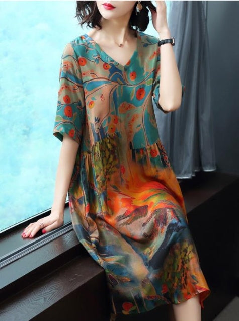 Plus Size Milk Silk Printed Midi Skirt Beach Dress