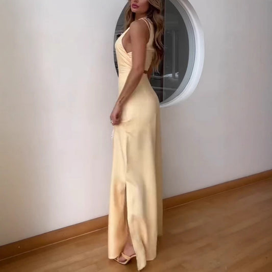 Solid Color Sleeveless Sexy Wide-leg Pleated Wide-leg Jumpsuit