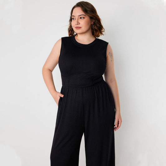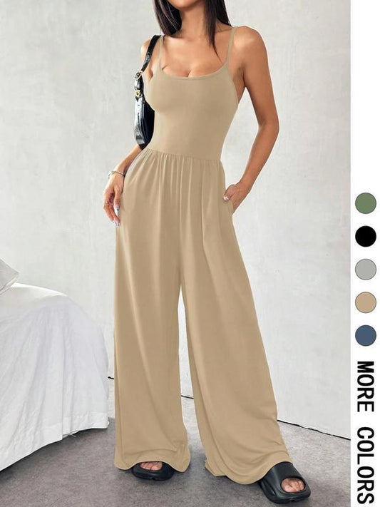 New Jumpsuit Solid Color Sleeveless Casual Pocket