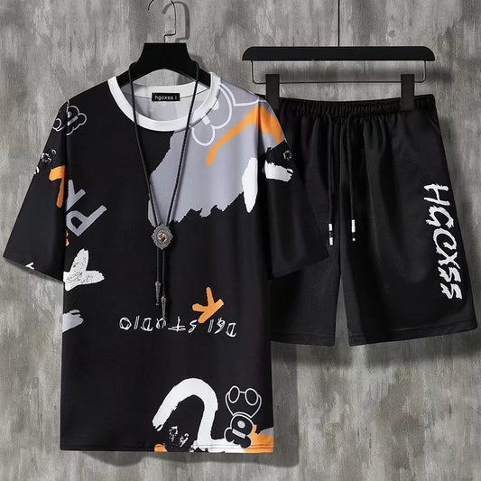 Summer Ice Silk Men's Short Sleeve Shorts Suit