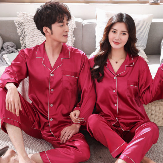 Couple's Silk Pajamas Long-sleeve Suit Silk Homewear