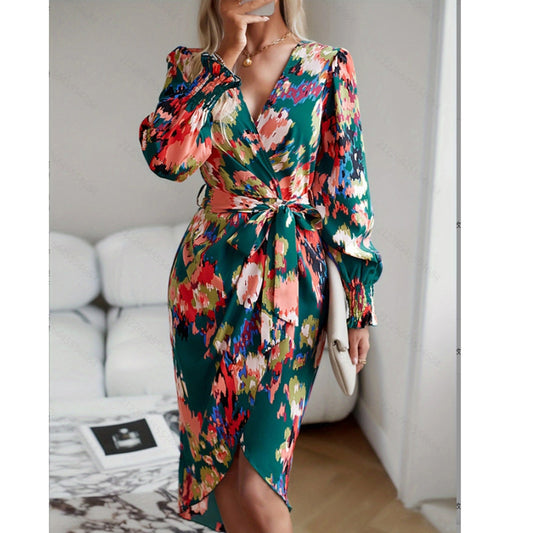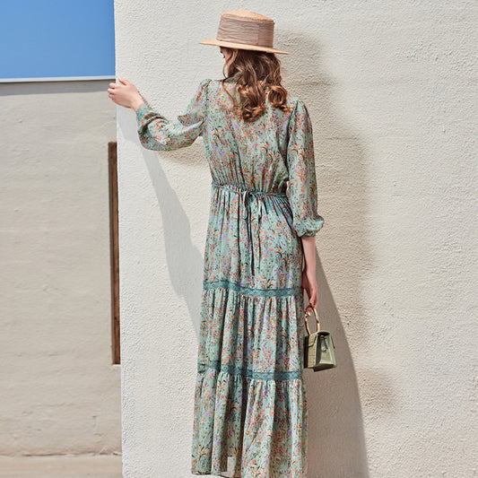 Wear Hangzhou Silk Women''s Wear Printed Lace V-neck Silk Dress Wholesale