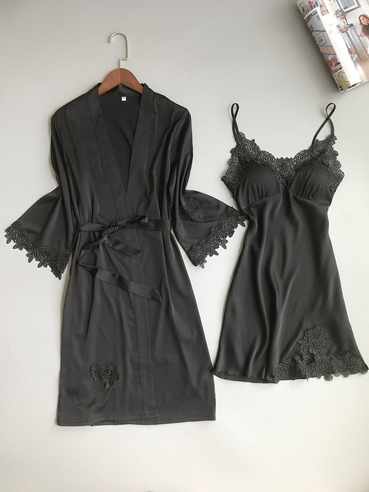 Ice Silk Backless Lace Sling Two-piece Pajamas