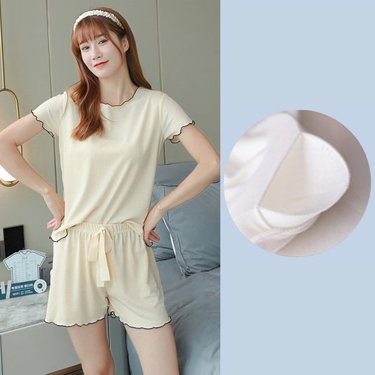 Ice Silk Loose Short Sleeved PajamasTwo Piece Set