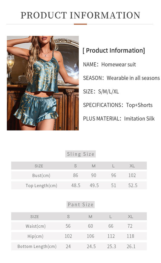 Two-Piece Pajamas Women's Summer Sexy Ice Silk Suspenders