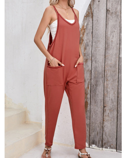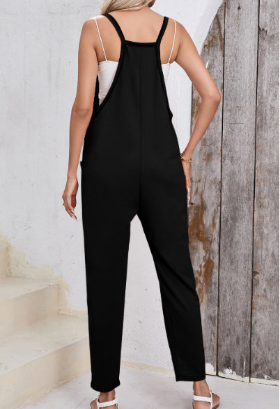 Black Side Pockets Harem Pants Sleeveless...