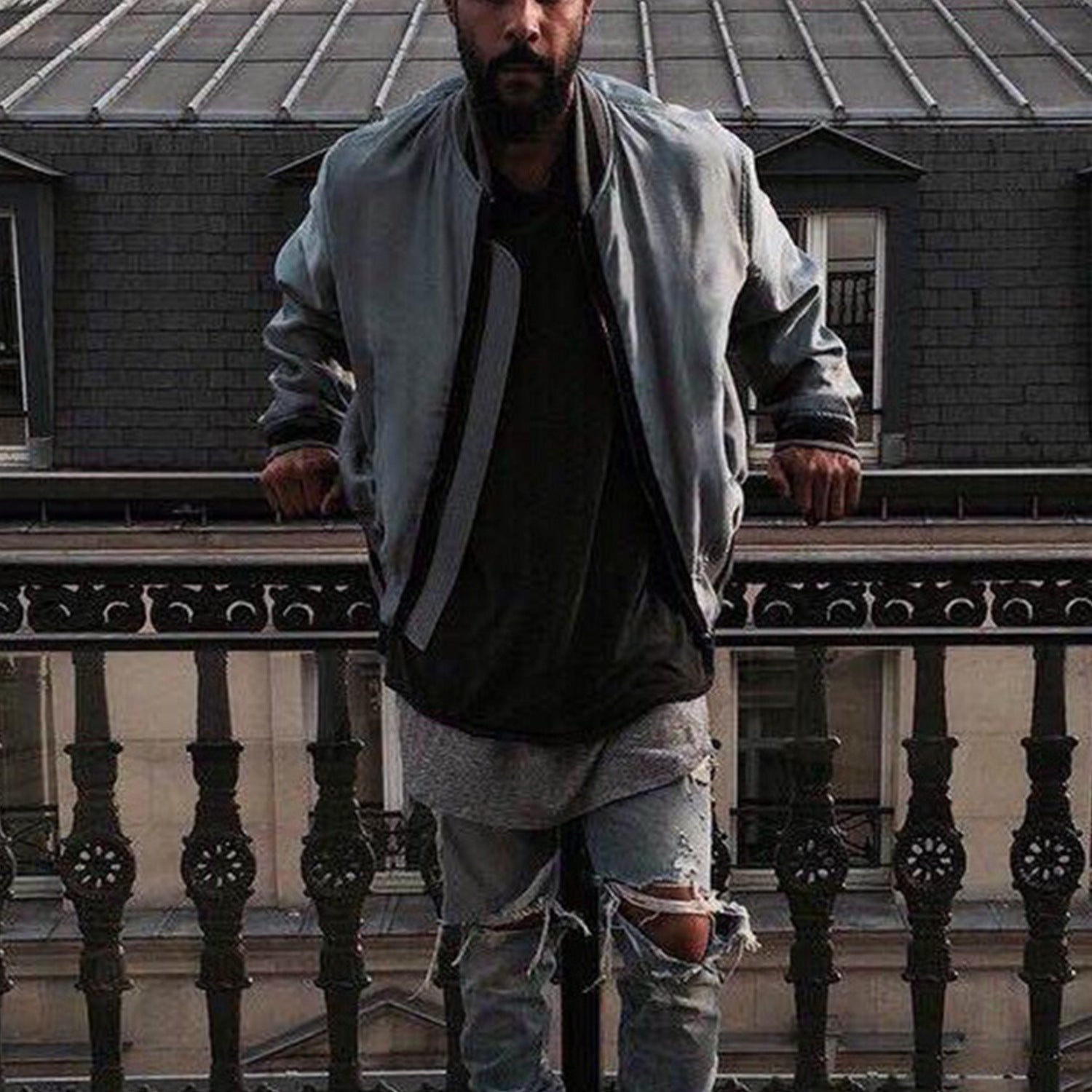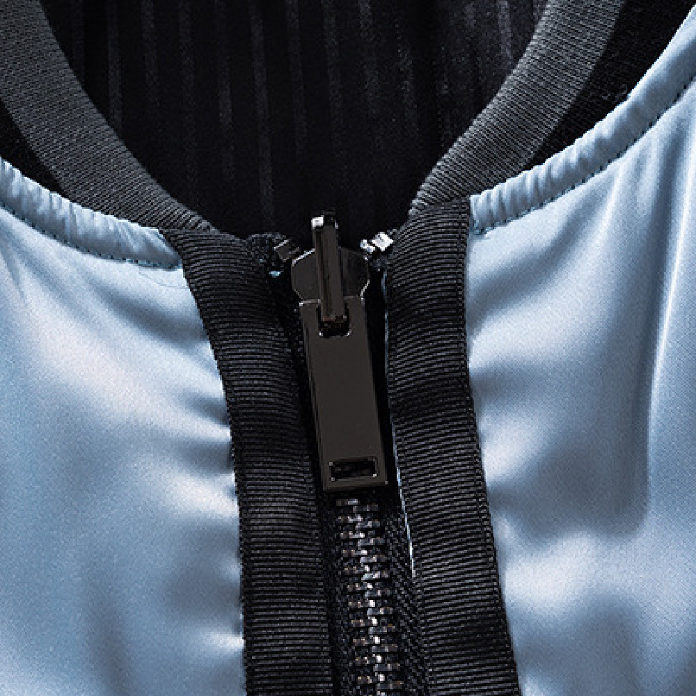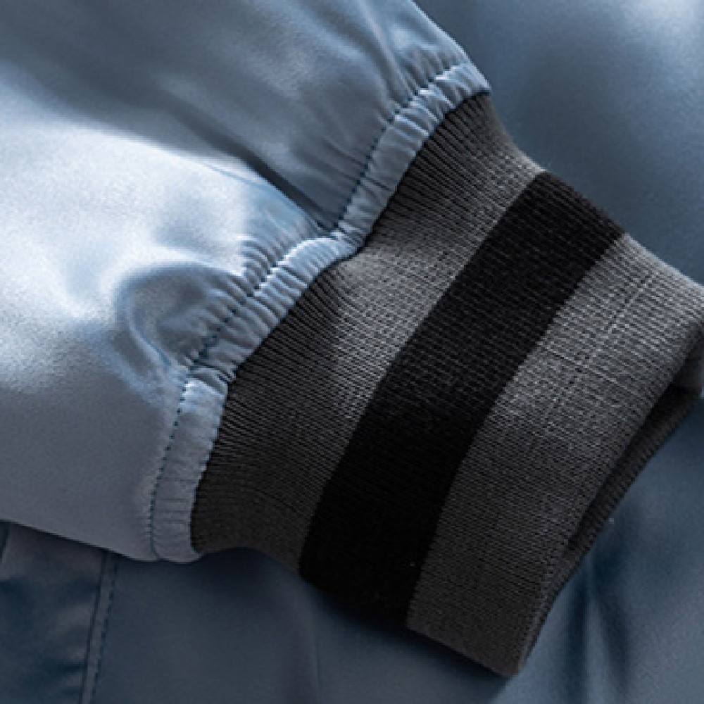 Blue Silk Cotton Bomber Jacket