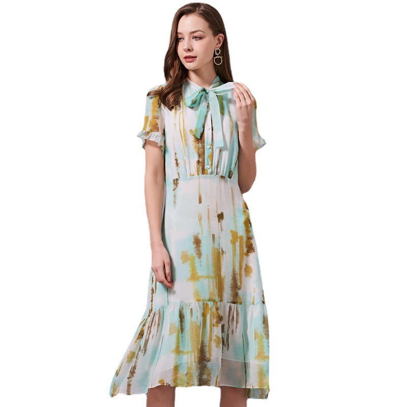 Bow Tie Tie Waist Slimming Silk...