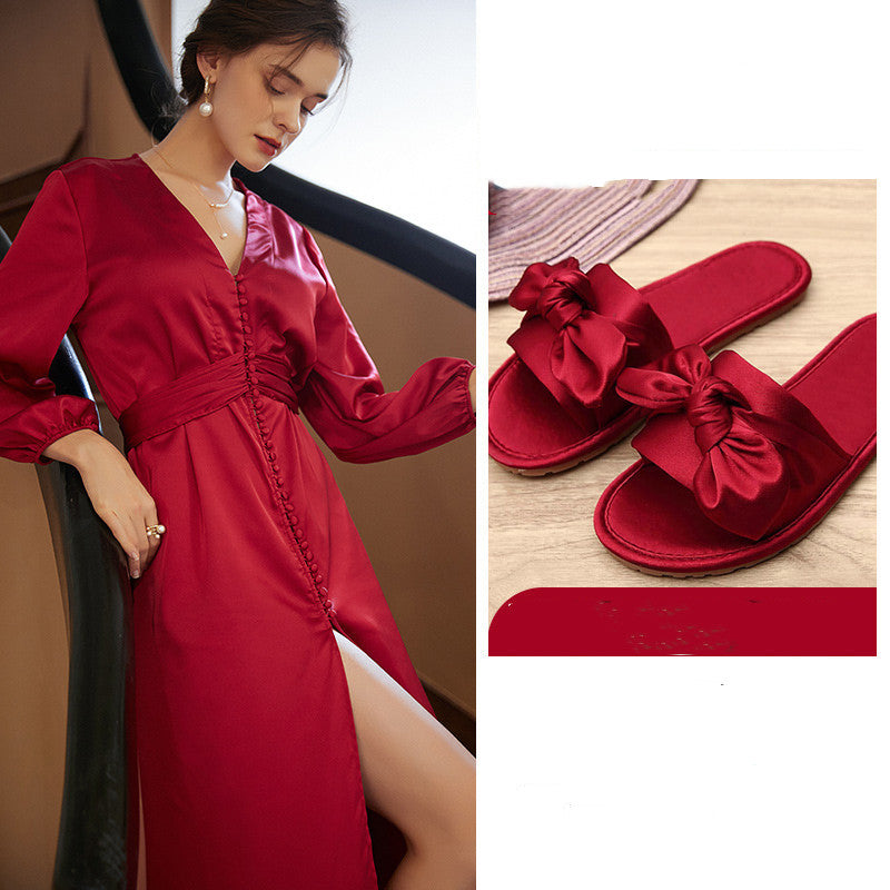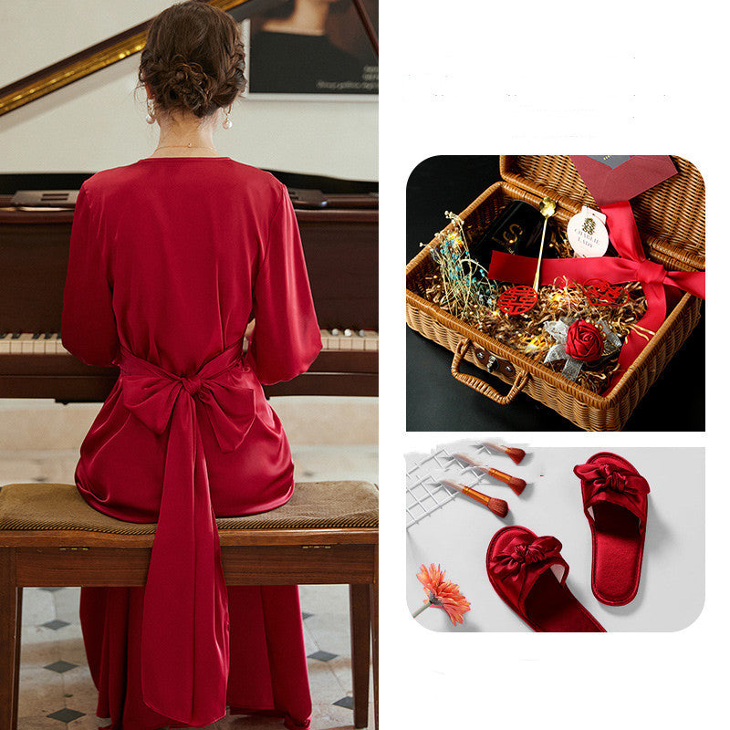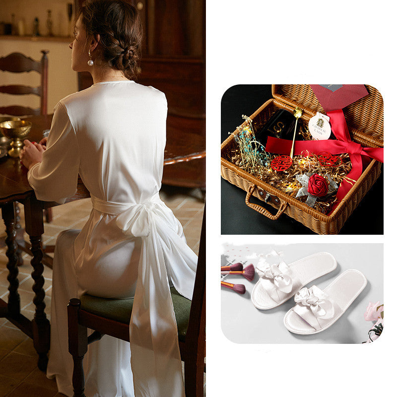 Color Classification: White Wine Wine Red Single Nightgown+Slippers Wine Red Gift Box Champagne Champagne Single Nightgown+Slippers Champagne Gift Box White Single Nightgown+Slippers White Gift Box
