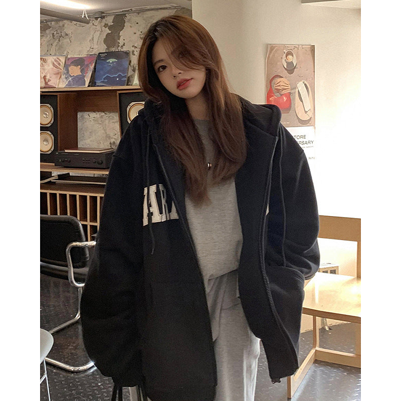 Cardigan Hooded Sweater Women's Thickened Plush...