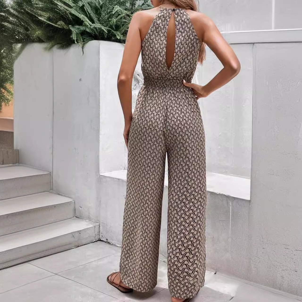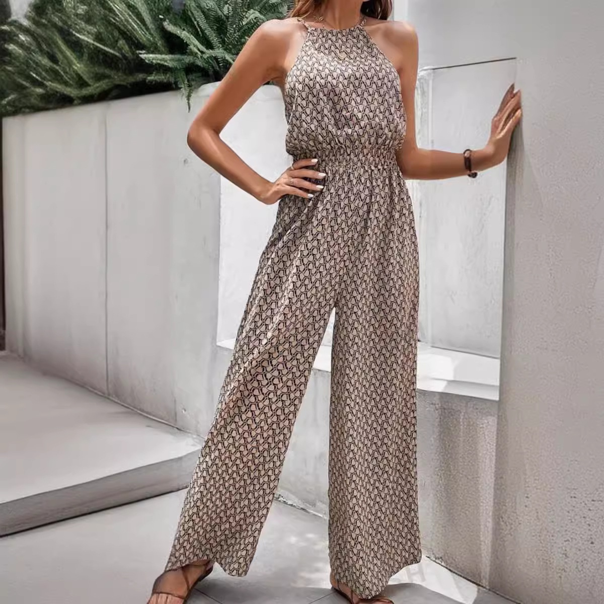 Casual Sleeveless Geometric Print Leopard Jumpsuit