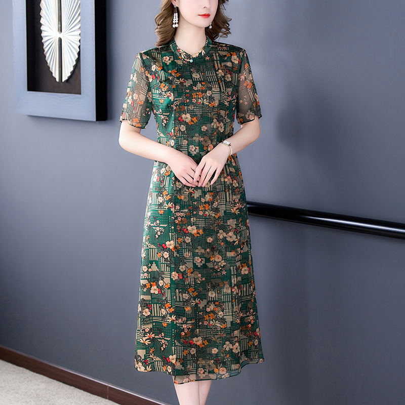 Elegant Cheongsam Chinese Style Silk Chiffon...