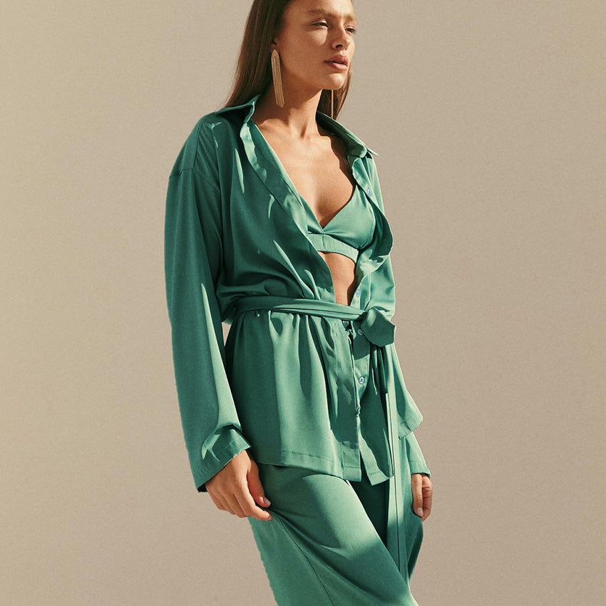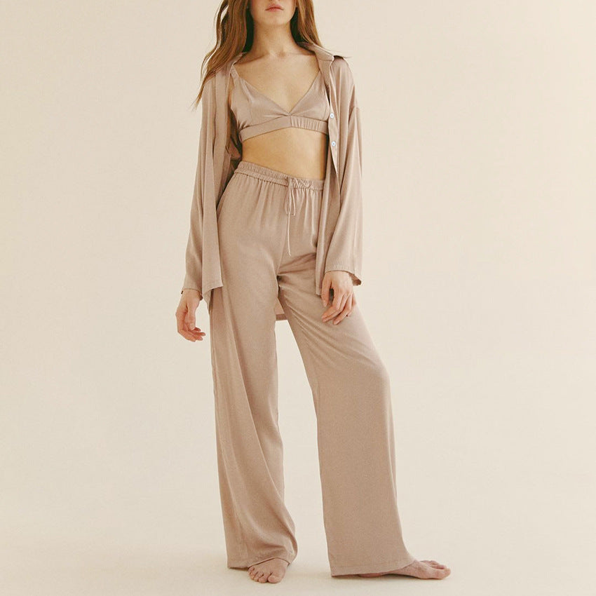 French Fashion Temperament Three-piece Pajamas Silk...