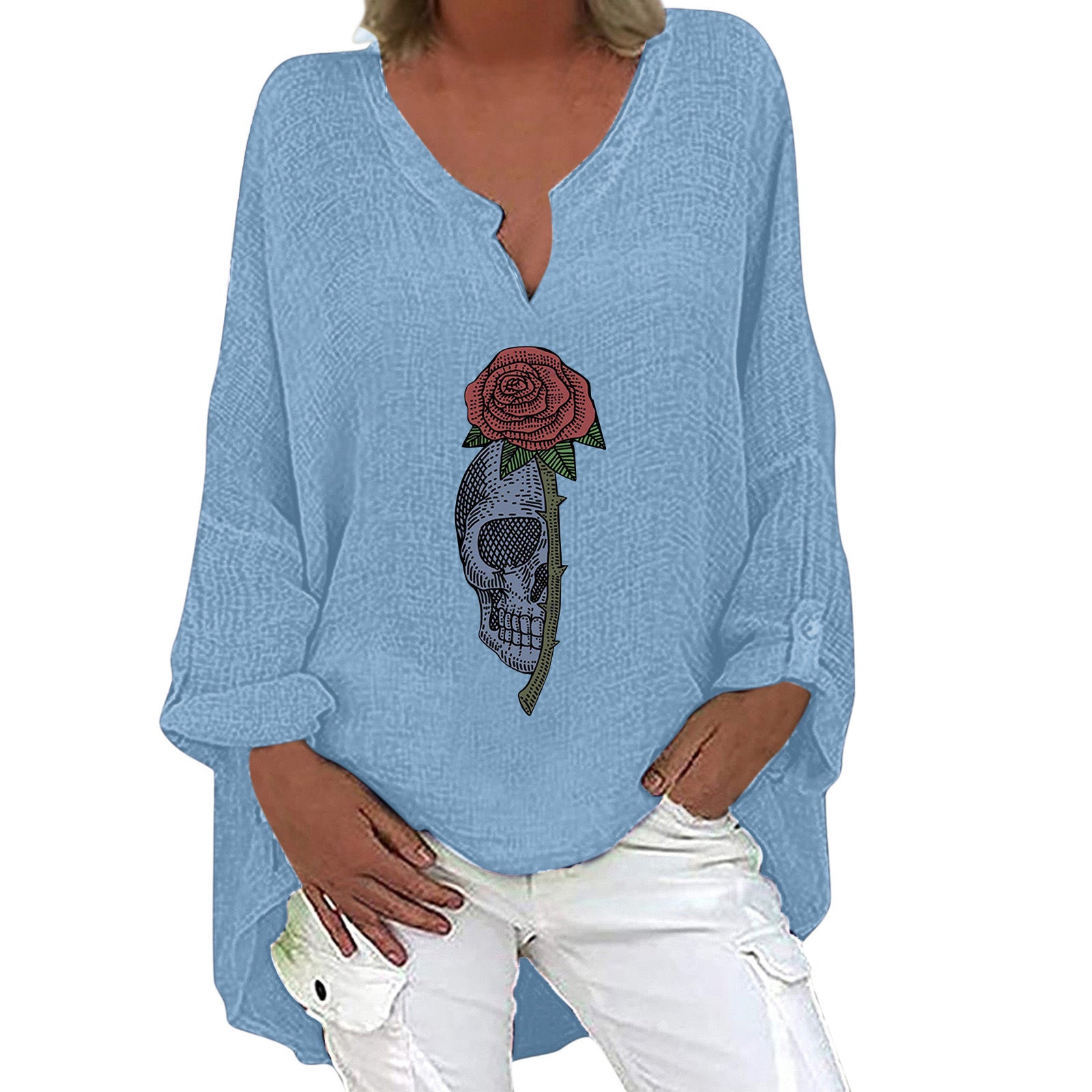 Halloween Themed Print V-neck Cotton Linen...