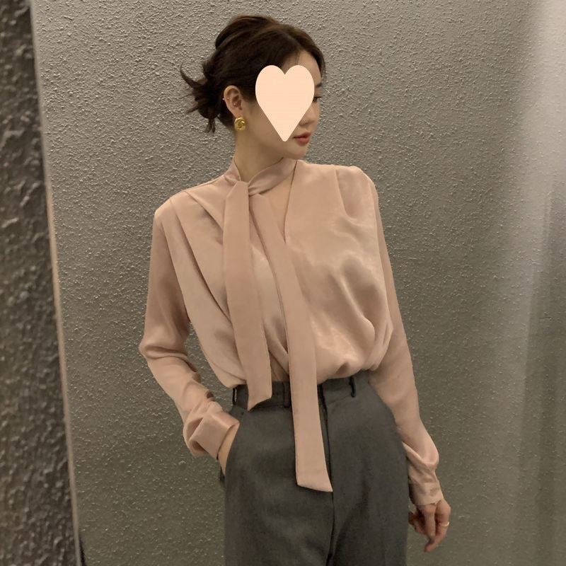 High-end Anti-wrinkle Lace-up Acetate Satin Shirt...