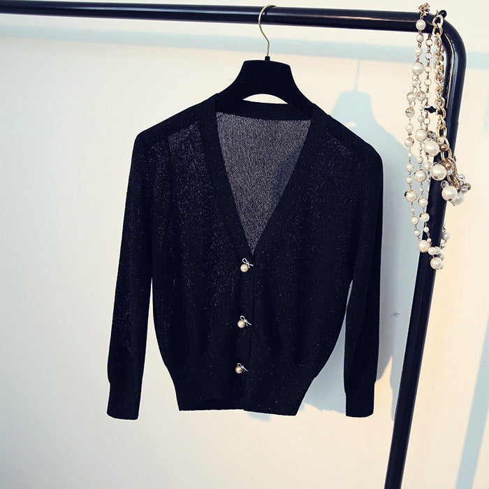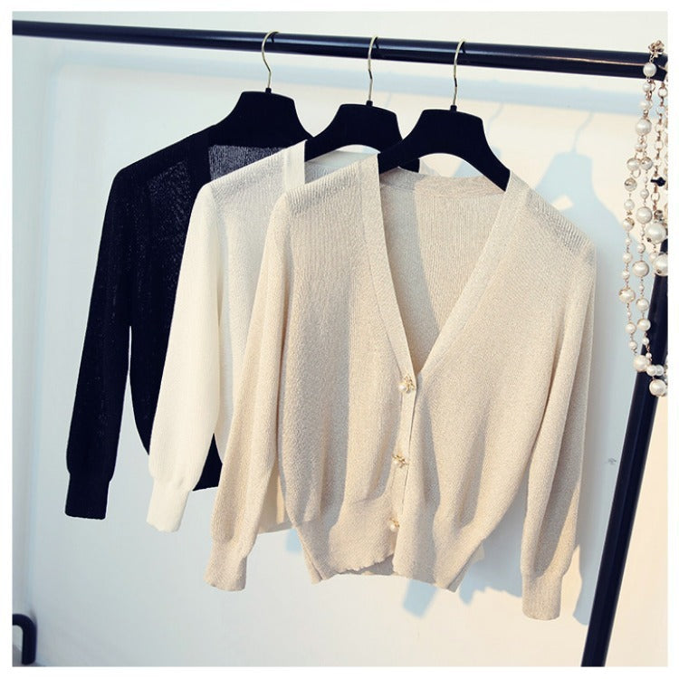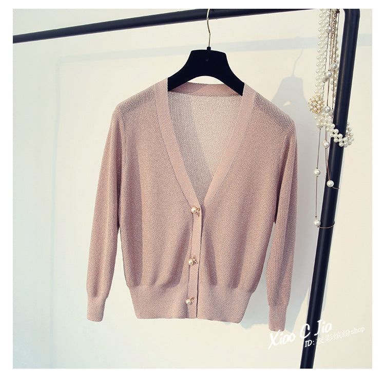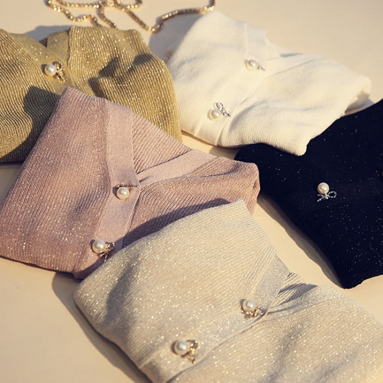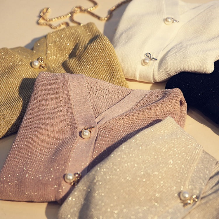 Ice silk bright silk cardigan sweater