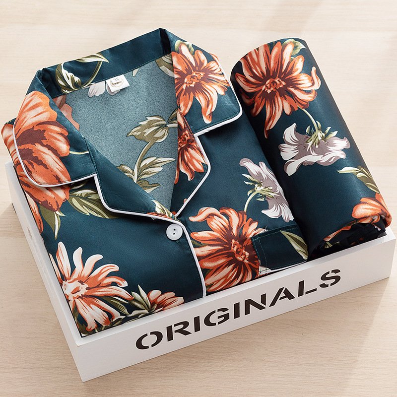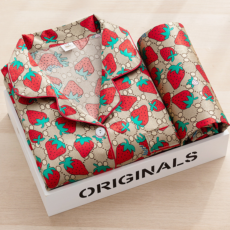 Ice Silk Pajamas Women's Long-sleeved Trousers...