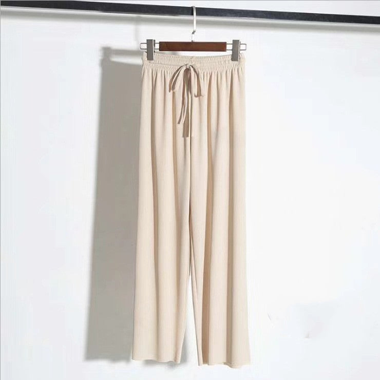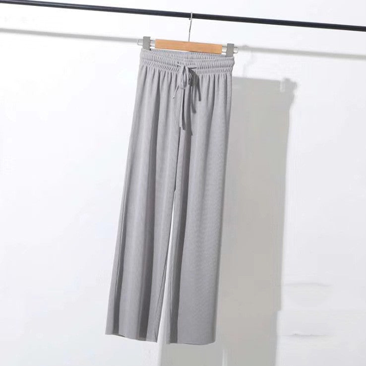 Ice Silk Pendant Wide-Leg Pants Straight-Leg...