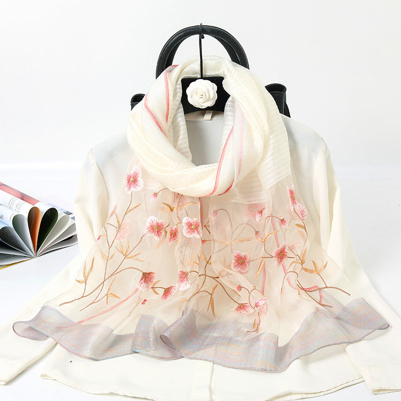 Ladies Embroidered Gold Silk Scarf Embroidered...