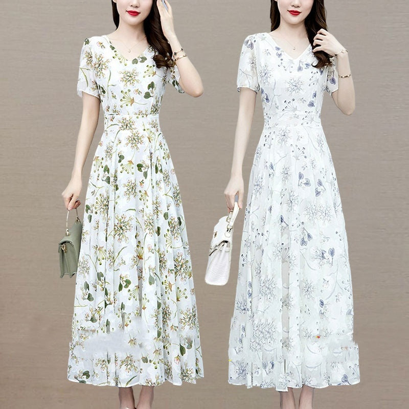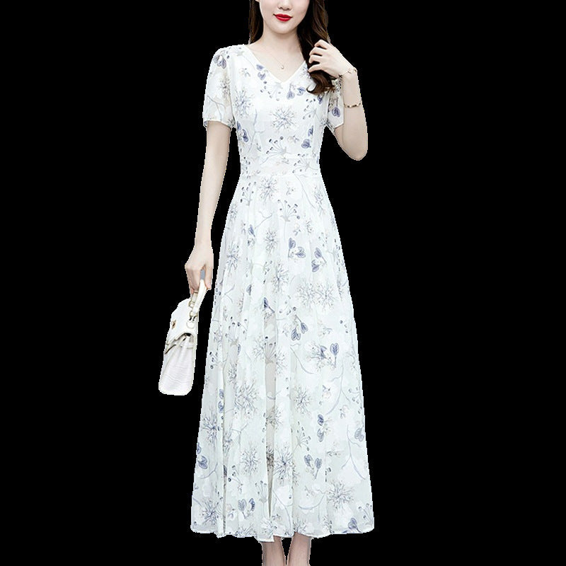 Loose Long V-neck Short Sleeve Ice...