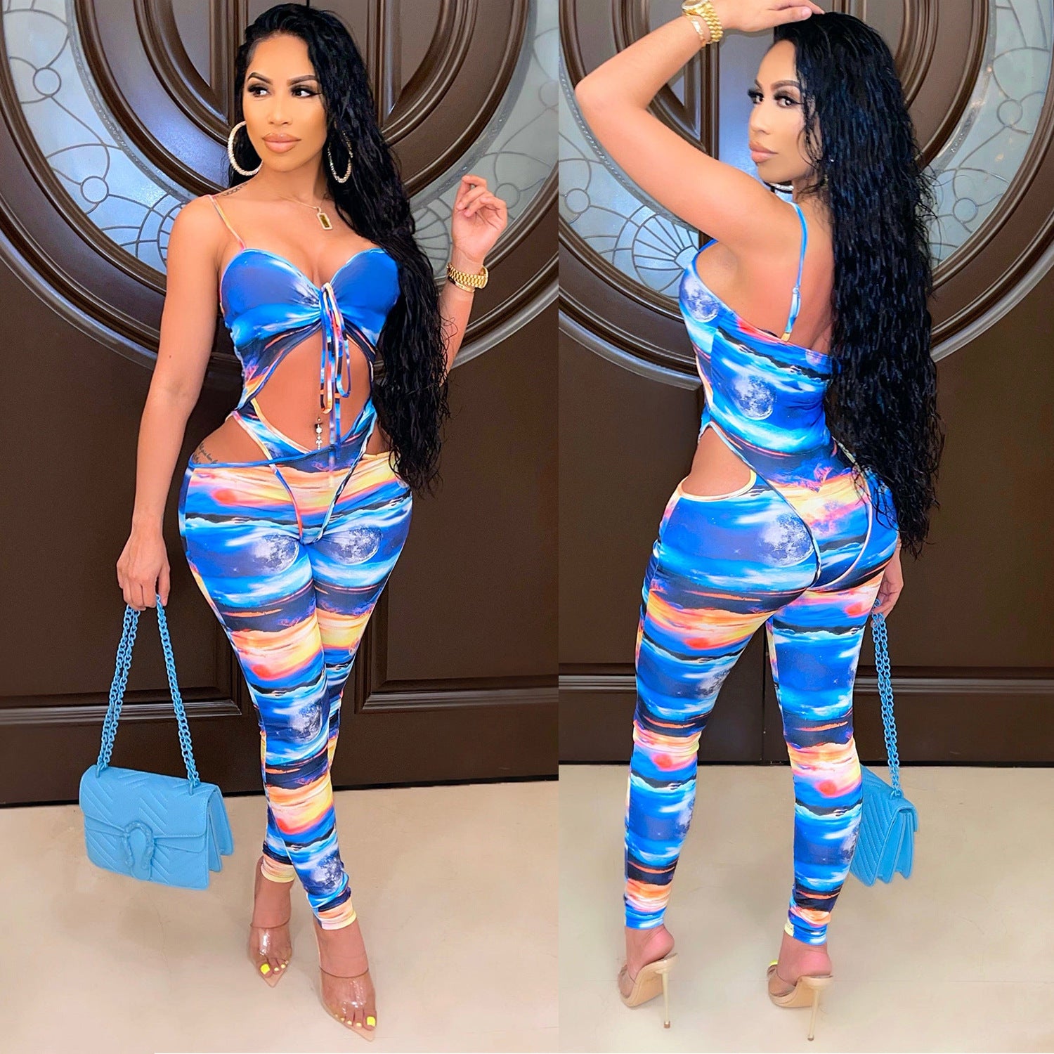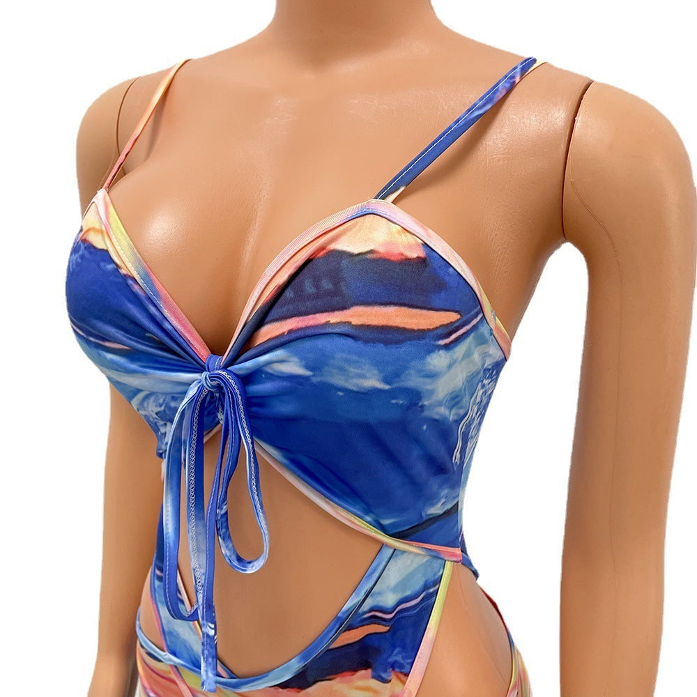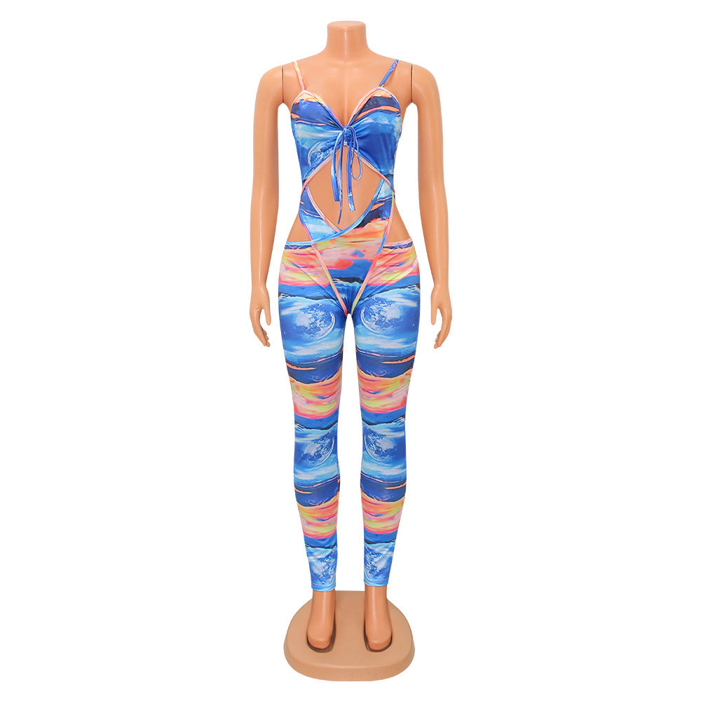 Milk Silk Printed Hollow-out Jumpsuit