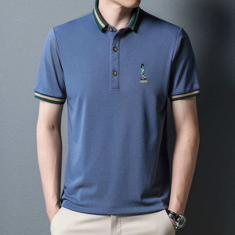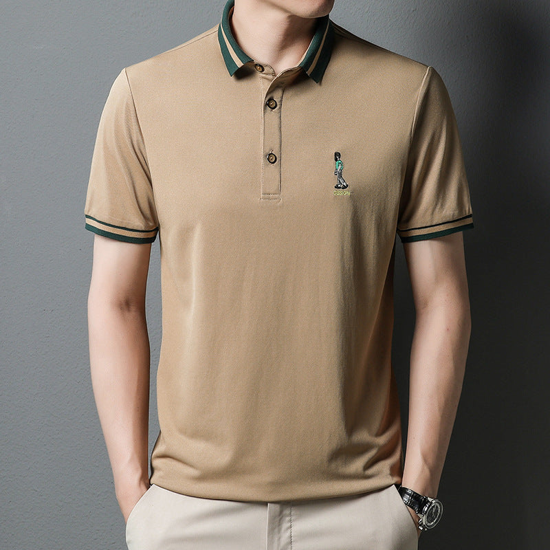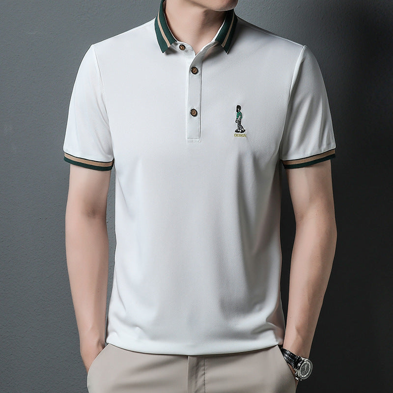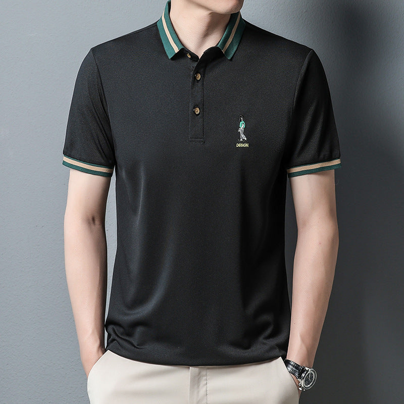 New Ice Silk Lapel T-shirt Men's Fashion Breathable Embroidery