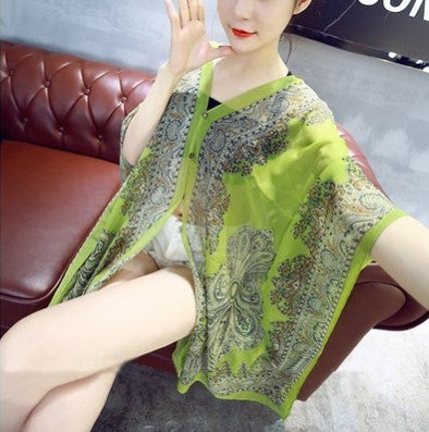 New retro cape silk scarf blouse