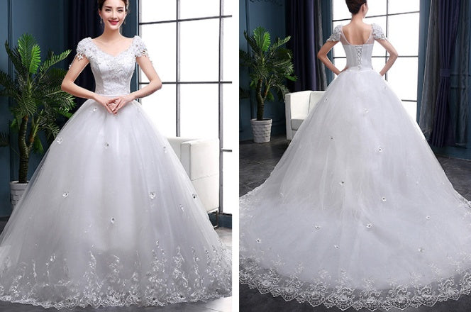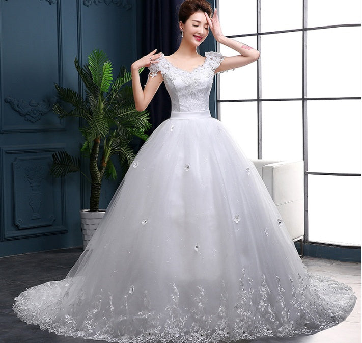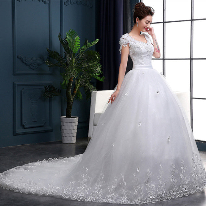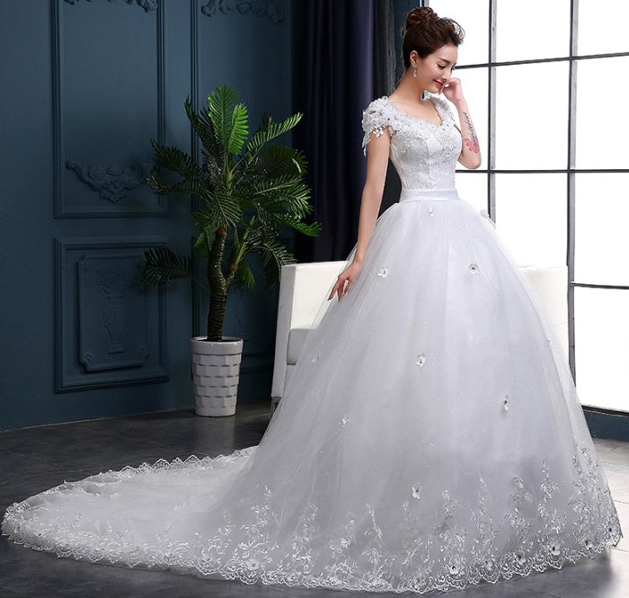 Step into forever with Eternal Bloom—a timeless long-tail wedding gown designed to turn your walk down the aisle into a moment of cinematic beauty. This stunning bridal masterpiece features a delicately structured bodice that hugs the waist, enhancing your natural shape before flowing into a lavish, trailing skirt that sweeps the floor with regal elegance. Crafted in luxurious fabrics with subtle detailing, it radiates classic romance and modern grace, making it the ultimate symbol of love in full bloom.
