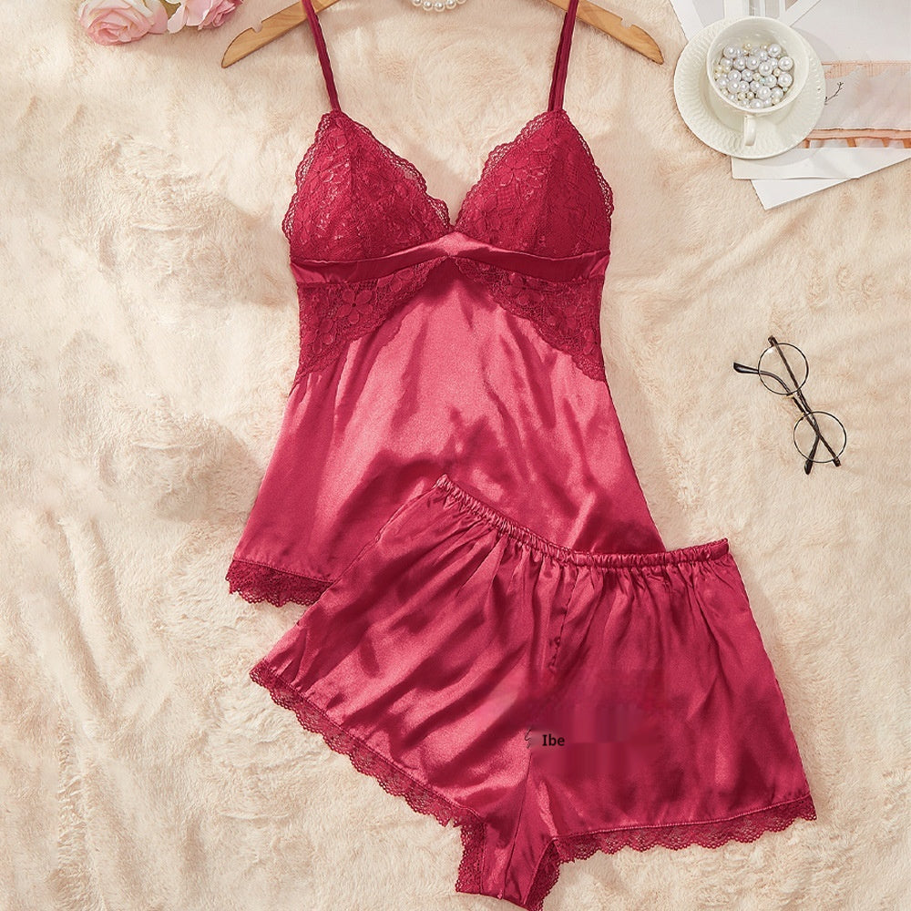 Pajamas Lace Thin Artificial Silk Camisole...