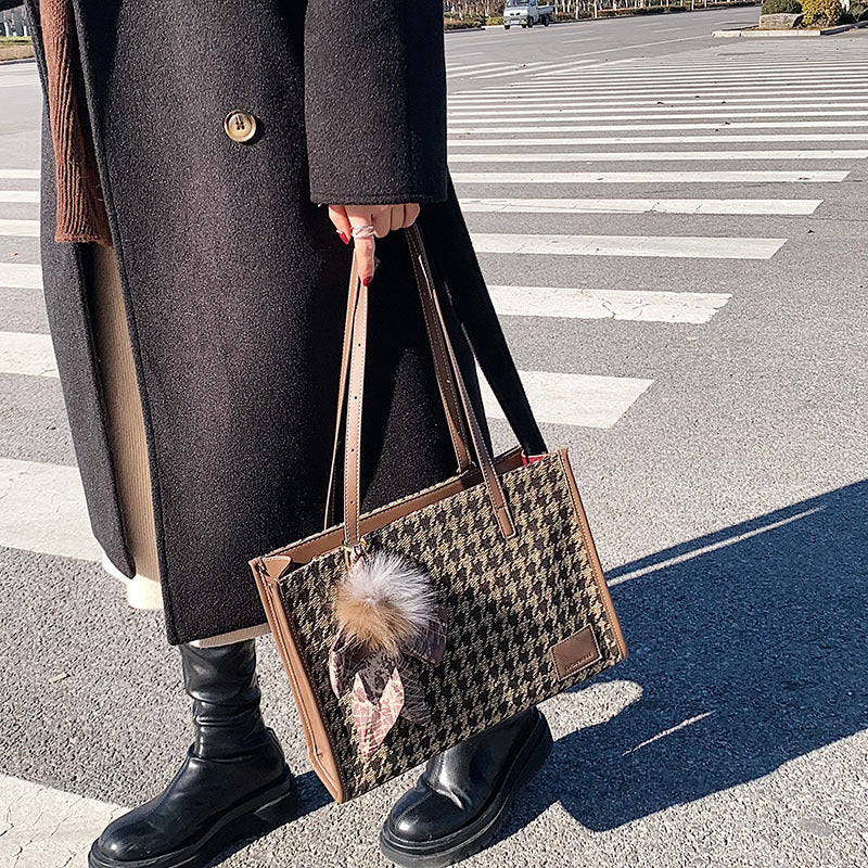 Plush Ball Silk Pendant Fashion Houndstooth...
