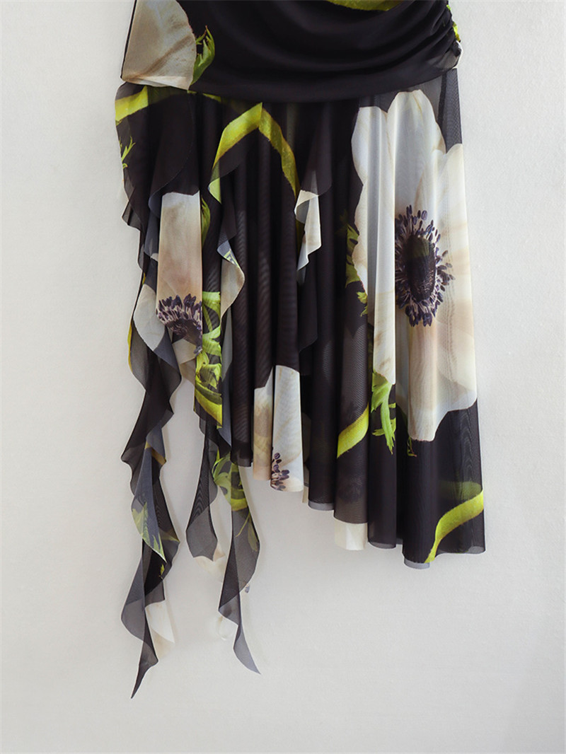 Printed Silk Net Tube Top Dress
