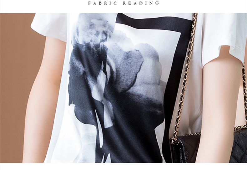 Printed silk white round neck T-shirt