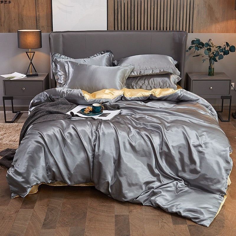 Pure Color Ice Silk Four-piece Bedding