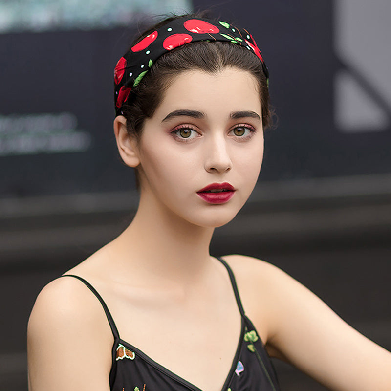 Red cherry print poplin rabbit headband...