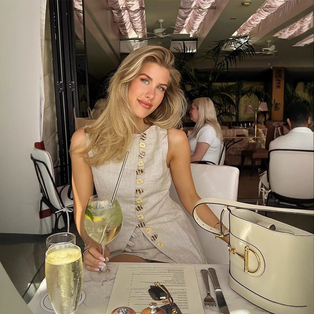 Claravue Buttoned Vest Skirt Set