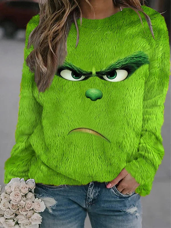 Round Neck Women's Green Fur Strange...