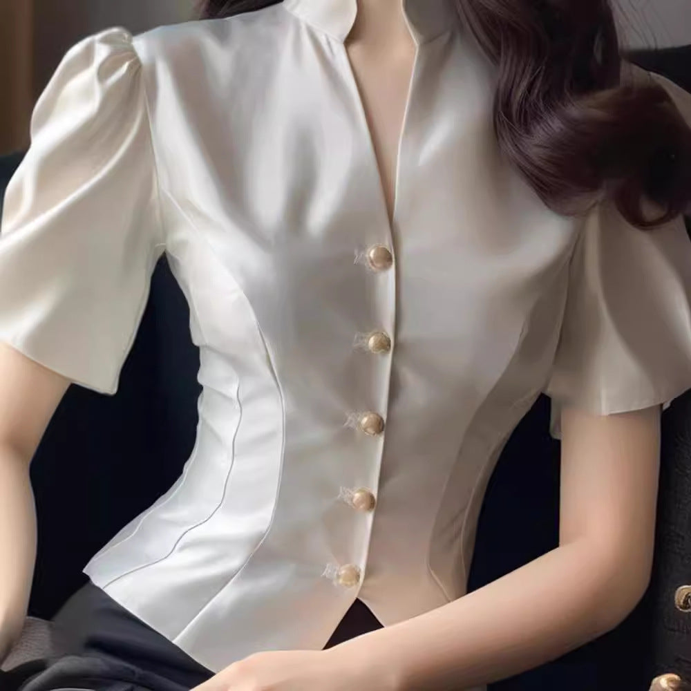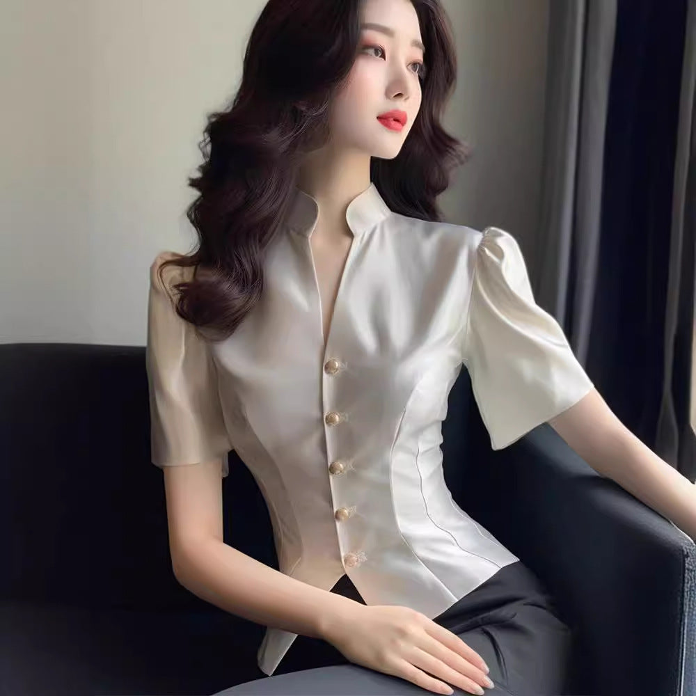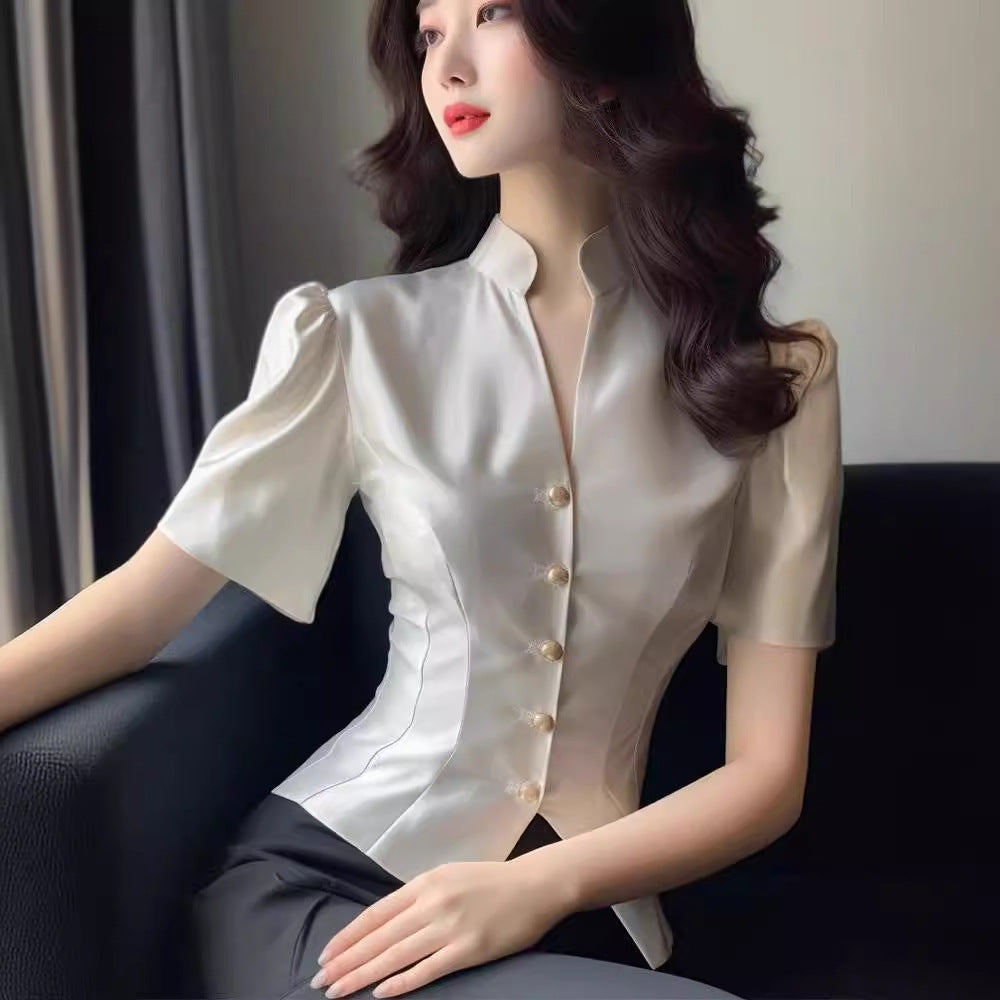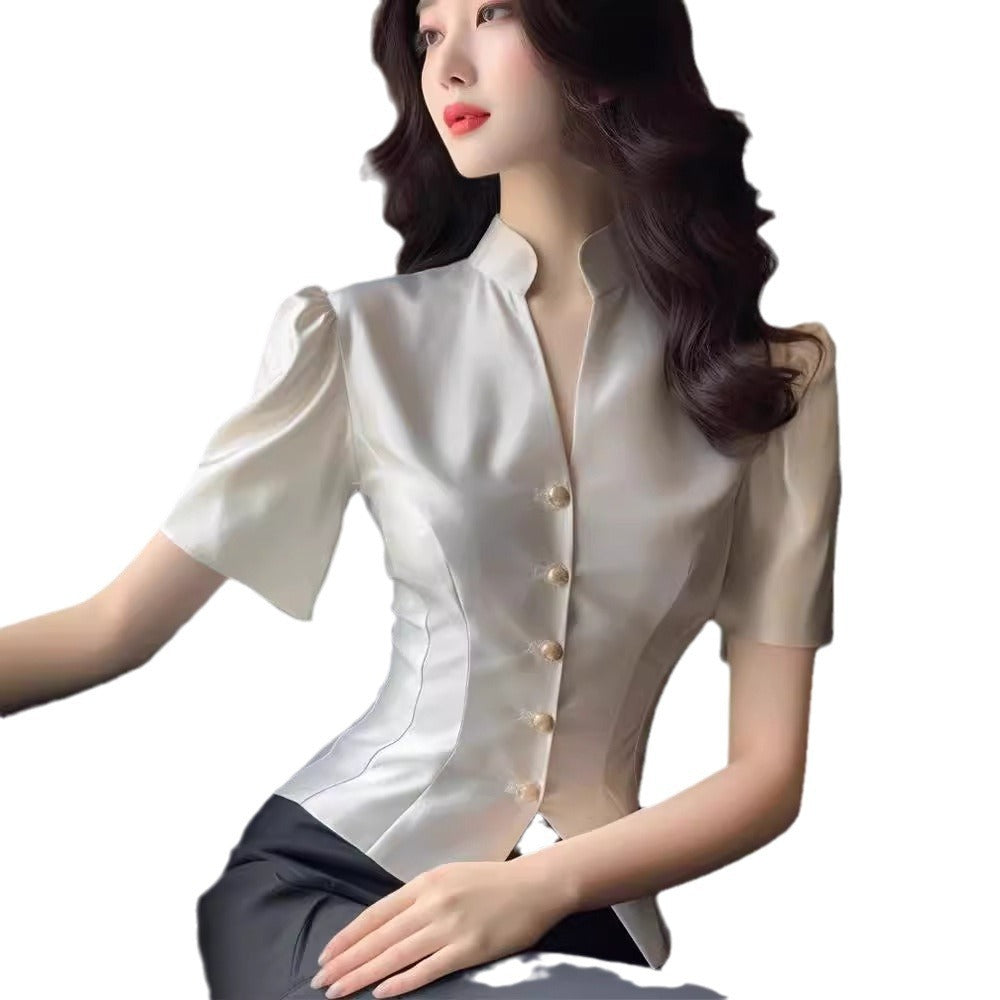 Satin Shirt Women's Tight Waist V-neck...