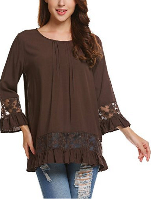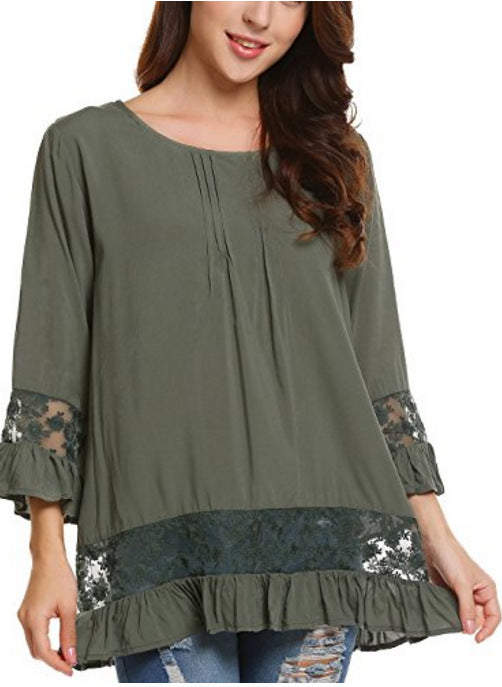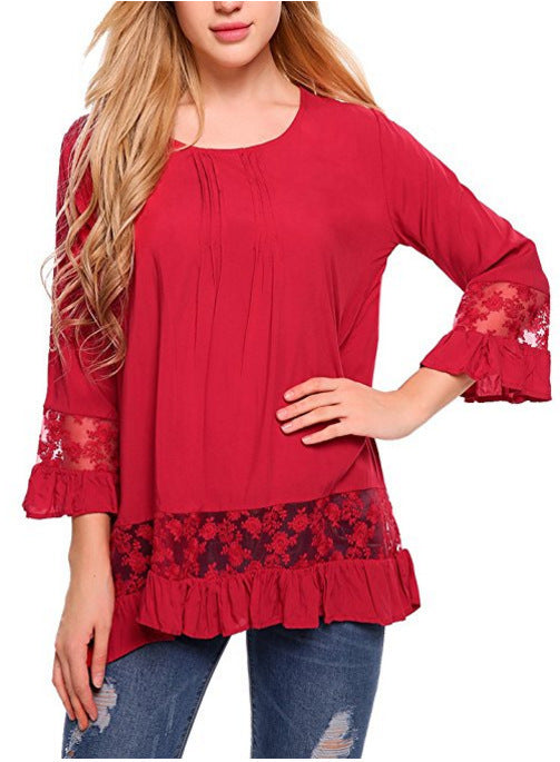 Silk Long Sleeve T-shirt Elegant Lace...