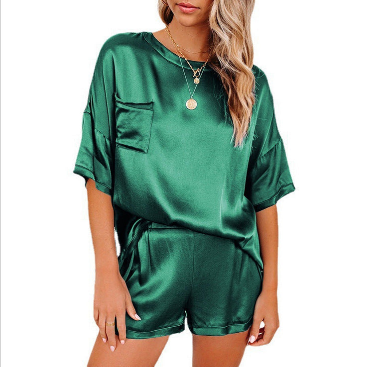 Silk Pajamas Home Service Short-Sleeved Shorts...