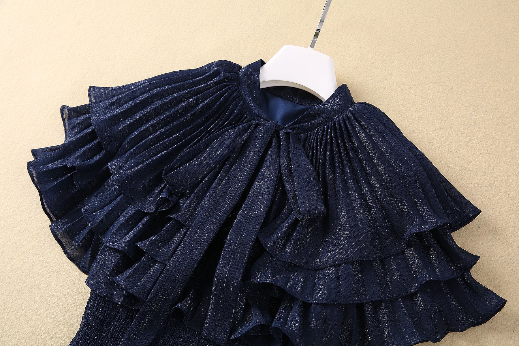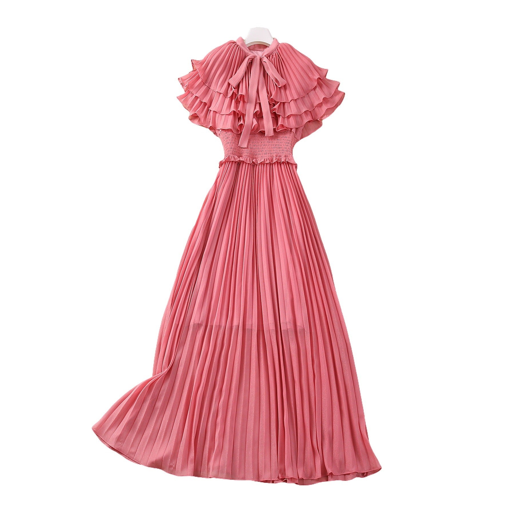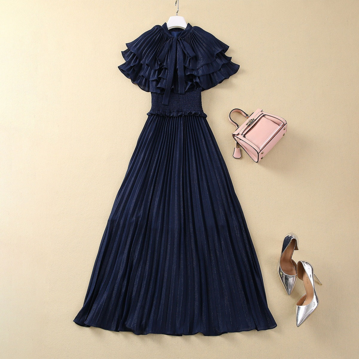 Silver Silk Pleated Elastic Waist Dress