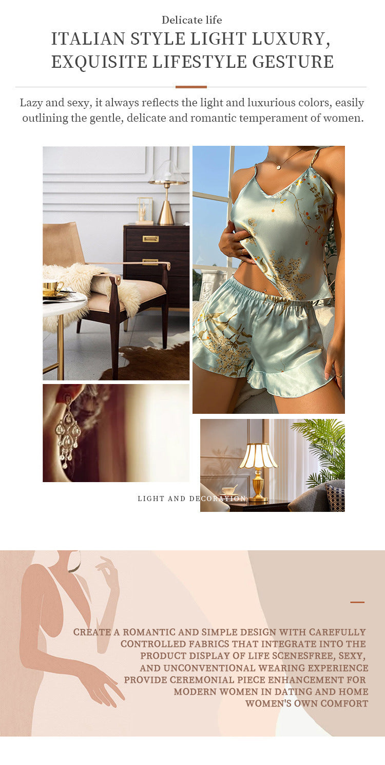Spring And Summer Imitated Silk Pajamas...