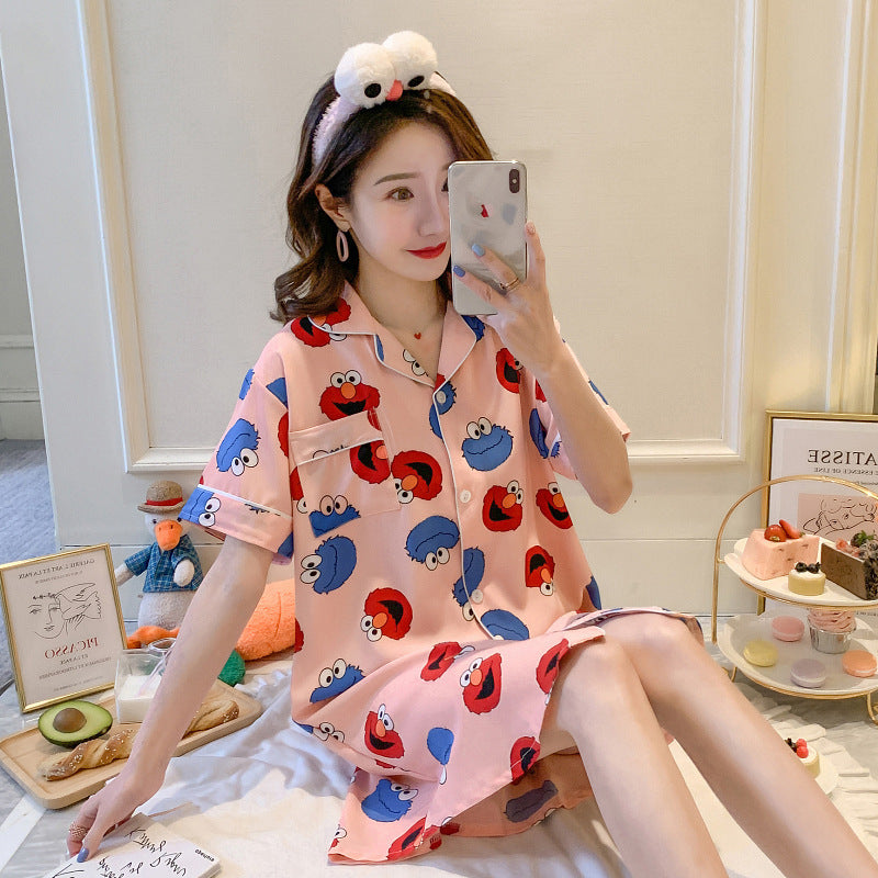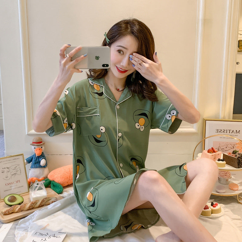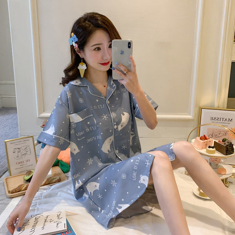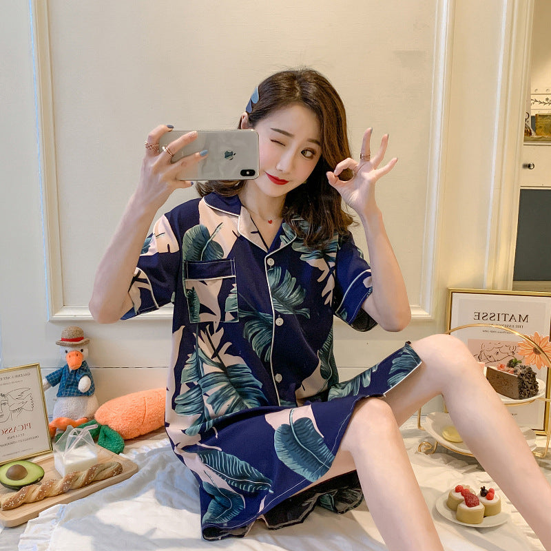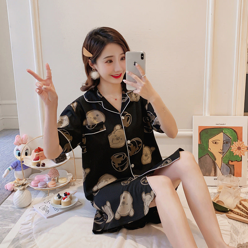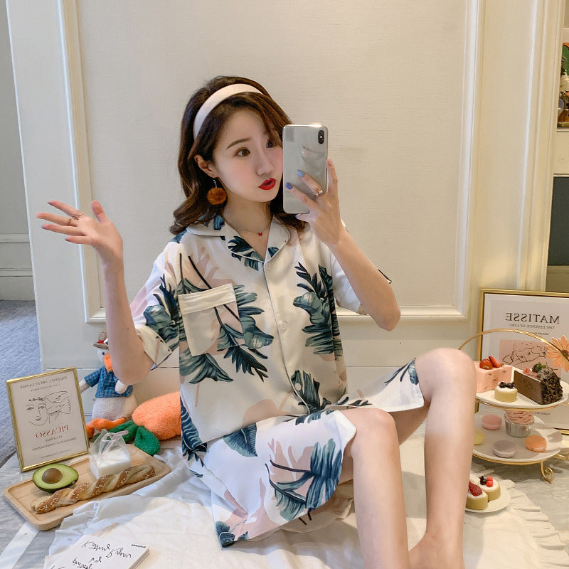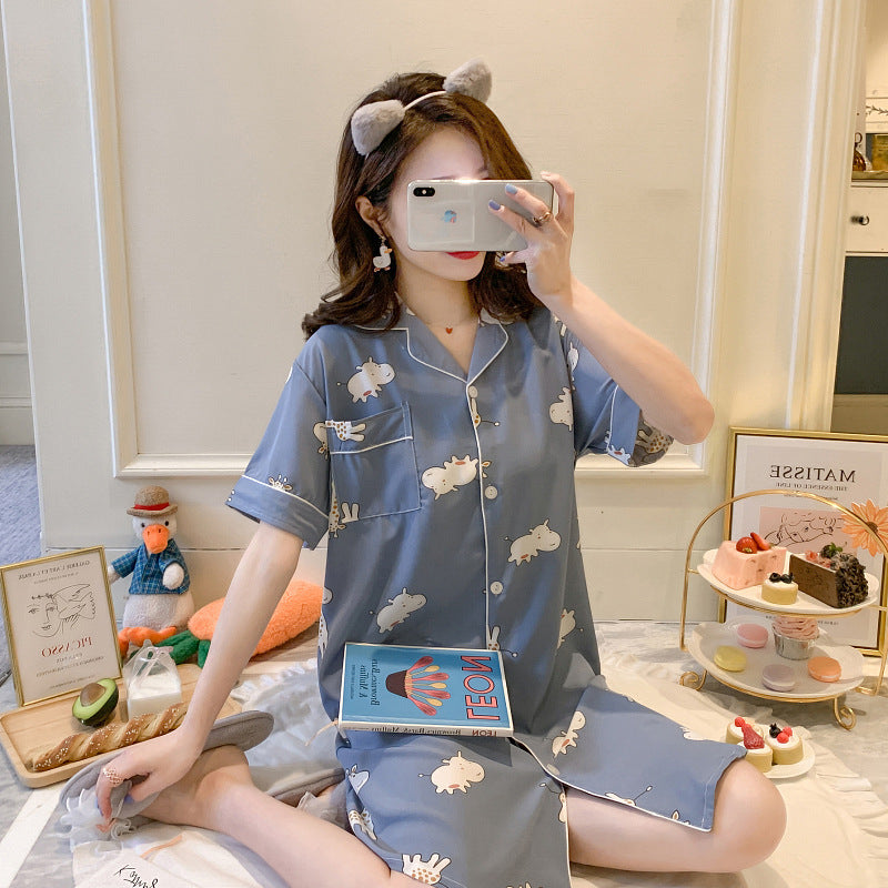 Summer Thin Short-Sleeved Ice Silk Pajamas