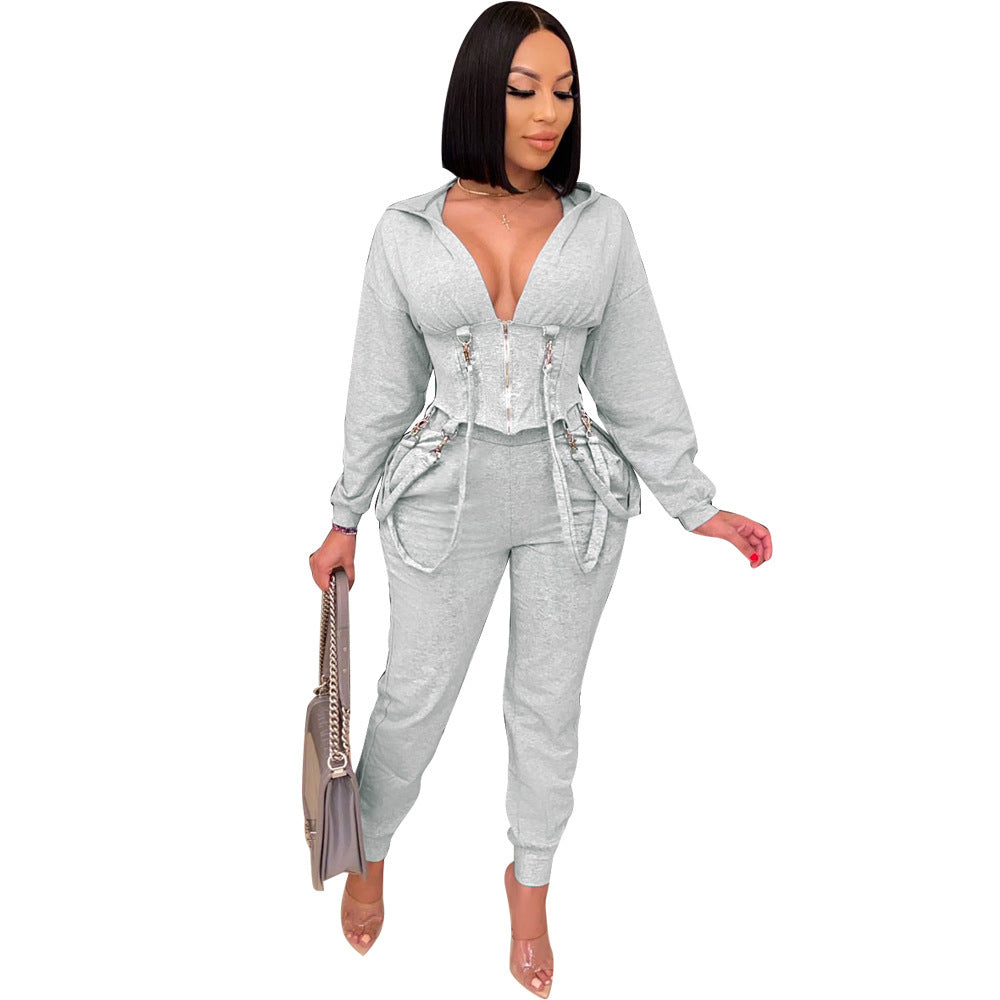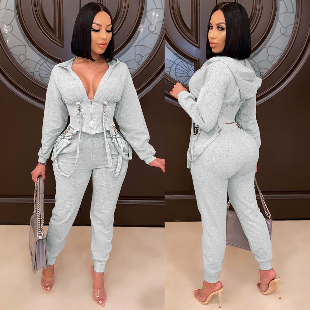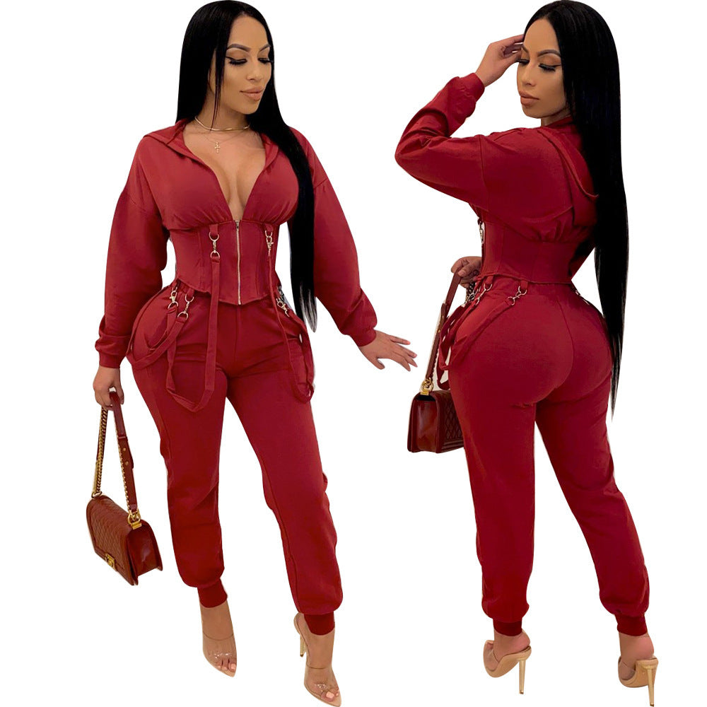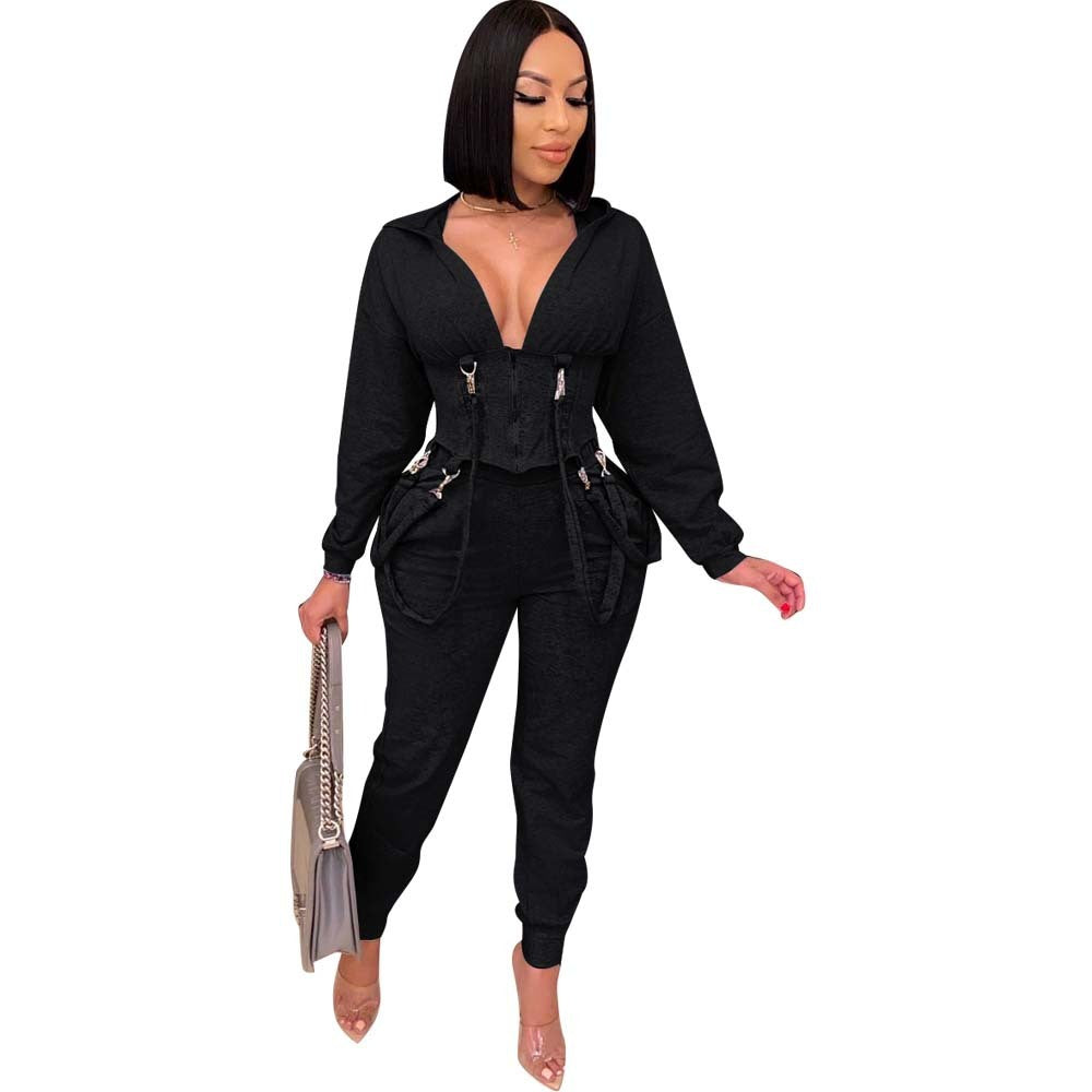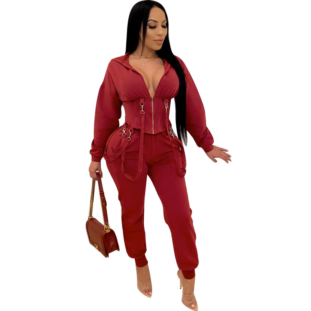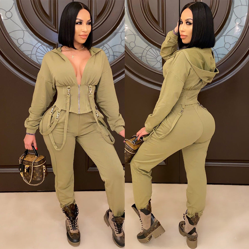 Popular elements: temperament commute fashion zipper slim hat collar two-piece set nightclub uniforms