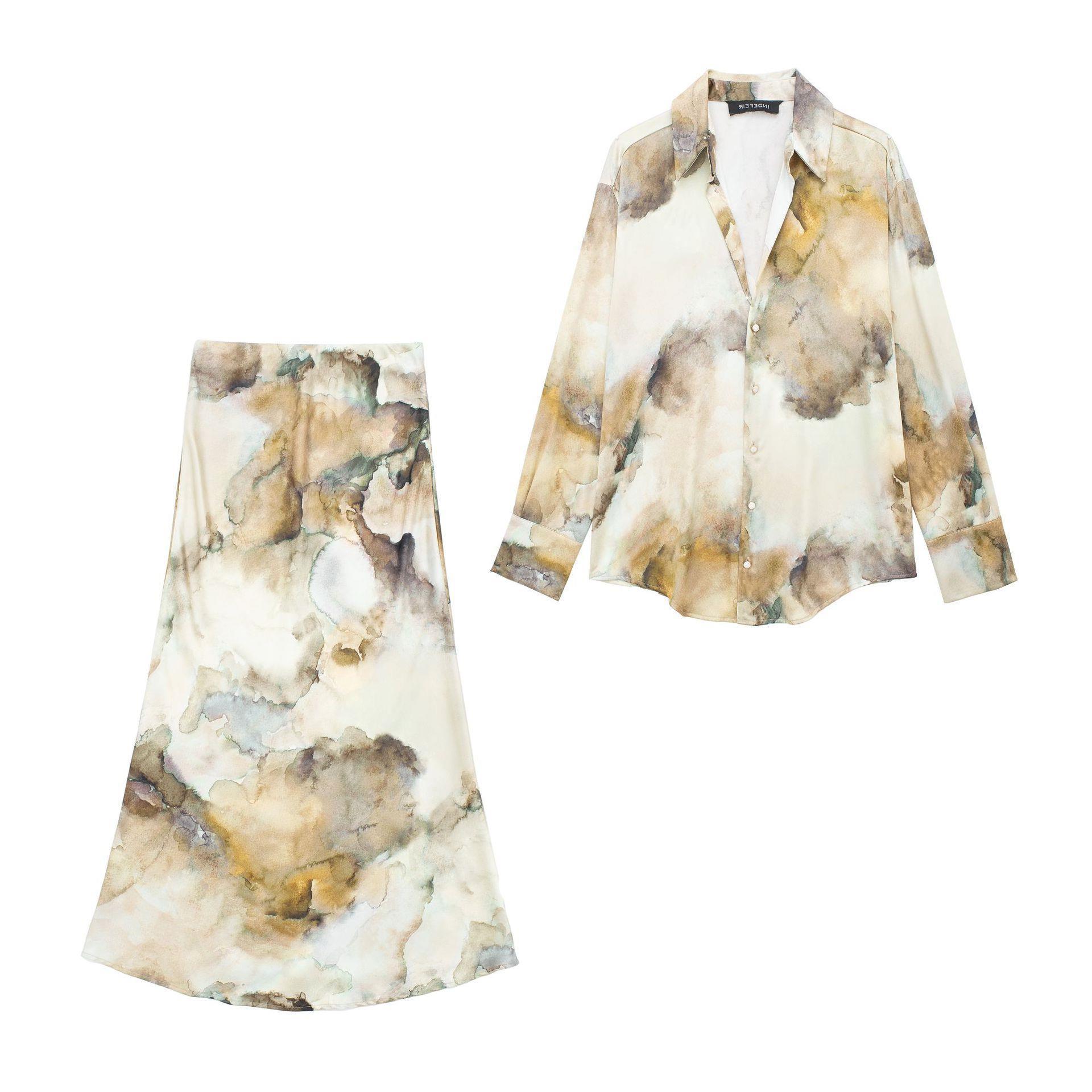 Tie-dyed Silk Satin Texture Shirt Silk...