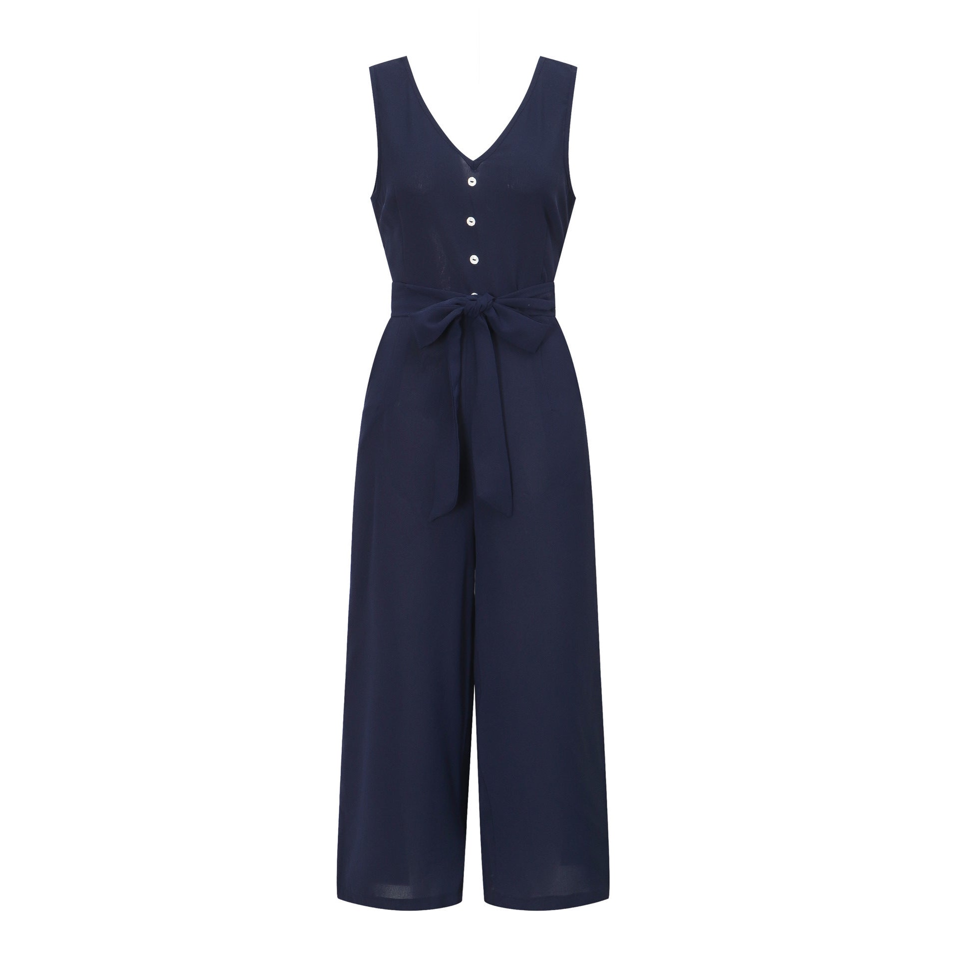 Command attention in the Velisse CintraSuit — a stunning V-neck halter jumpsuit that marries tailored charm with modern sensuality. Designed with a sleek button-down front, curve-enhancing belt, and a halter neckline that frames the shoulders beautifully, this one-piece look is your answer to confident, contemporary elegance.