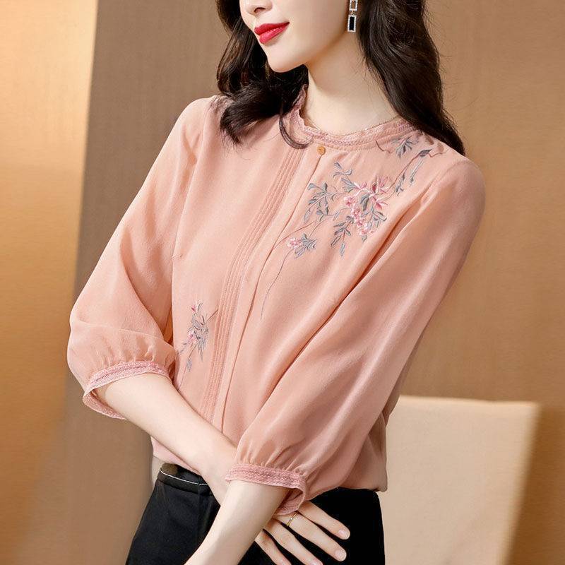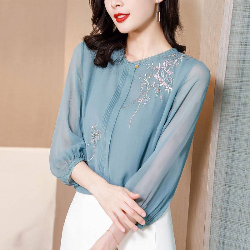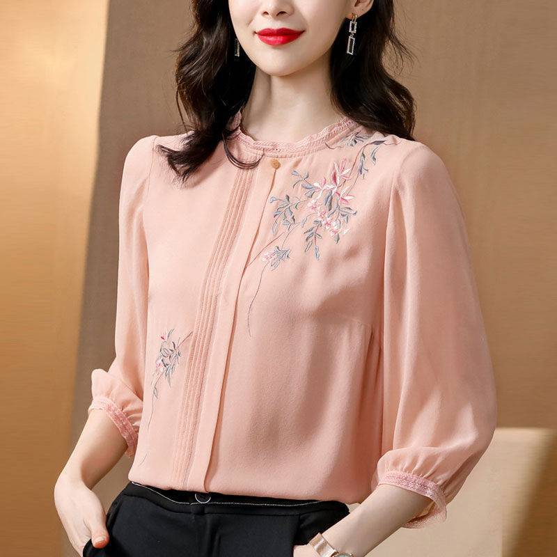 Western-style Age-reducing Chiffon Silk Women's Shirt