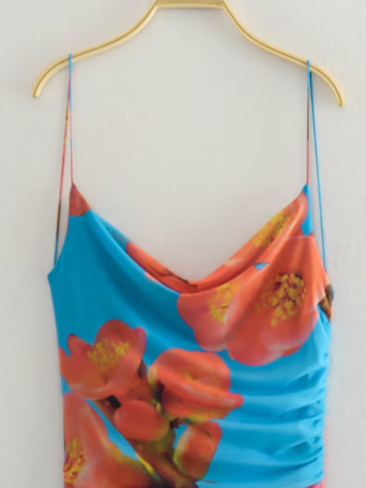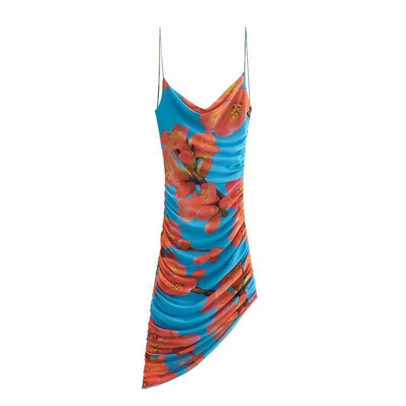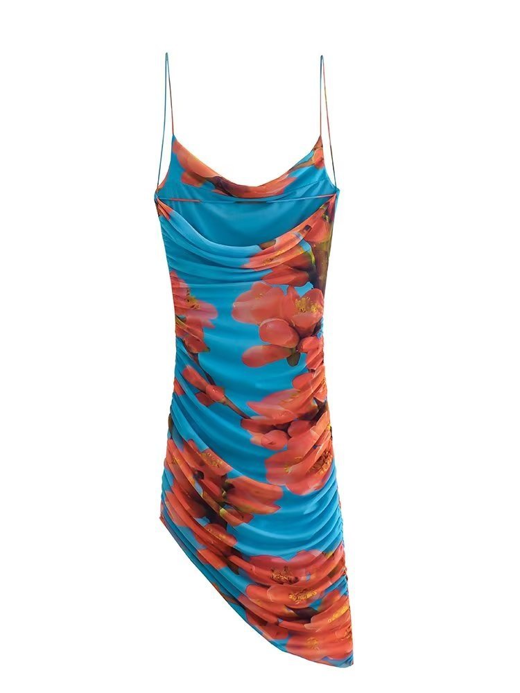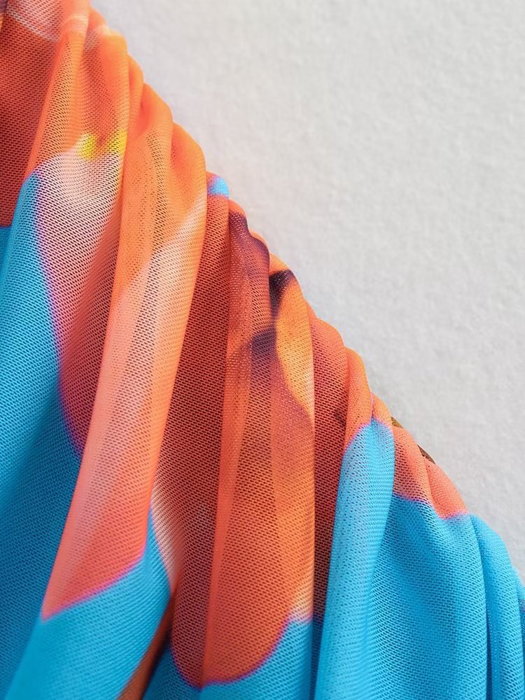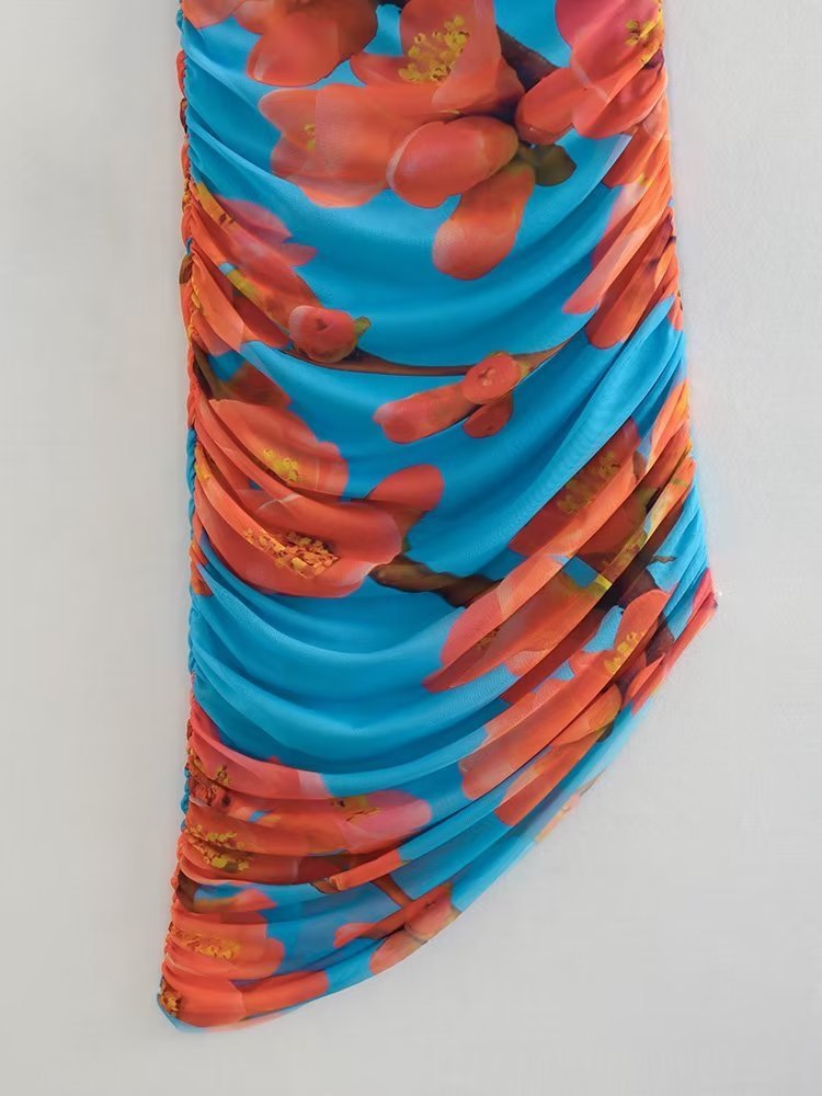 Women's Clothing Pleated Print Silk Net...