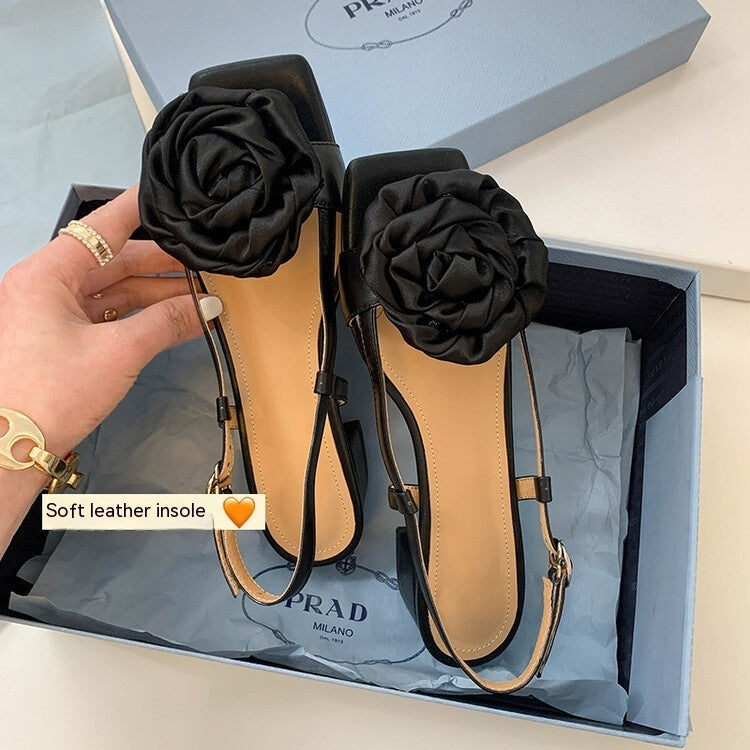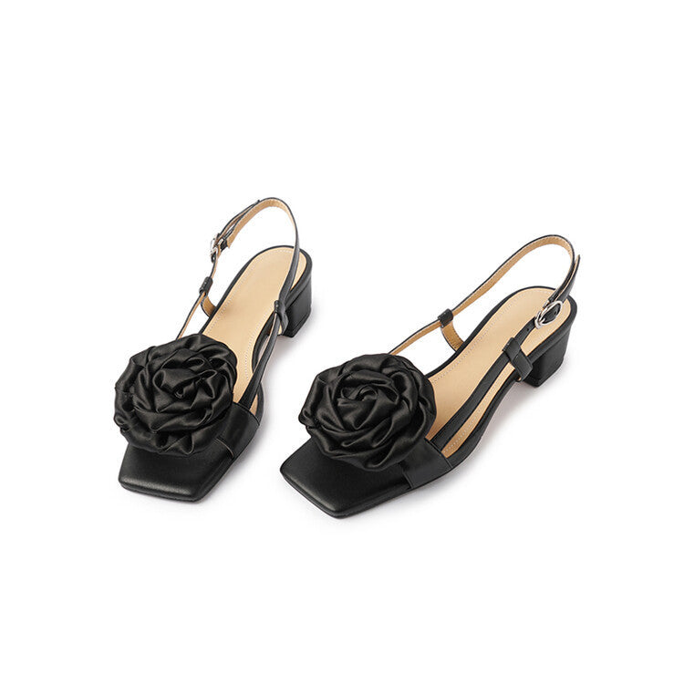 Women's Fashion Silk Flower Square Toe...
