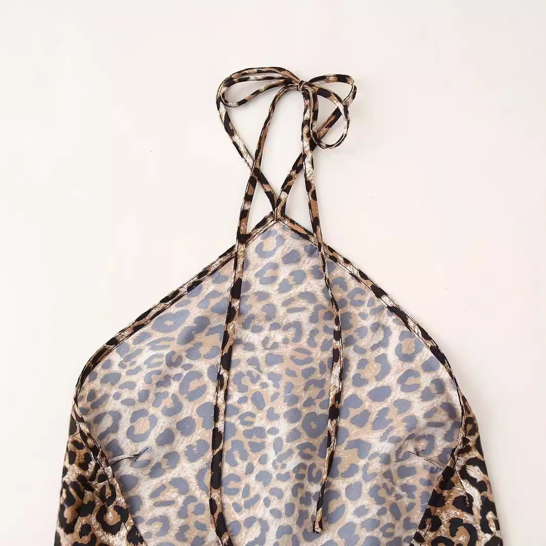 Women's Leopard Print Halter Silk Satin...