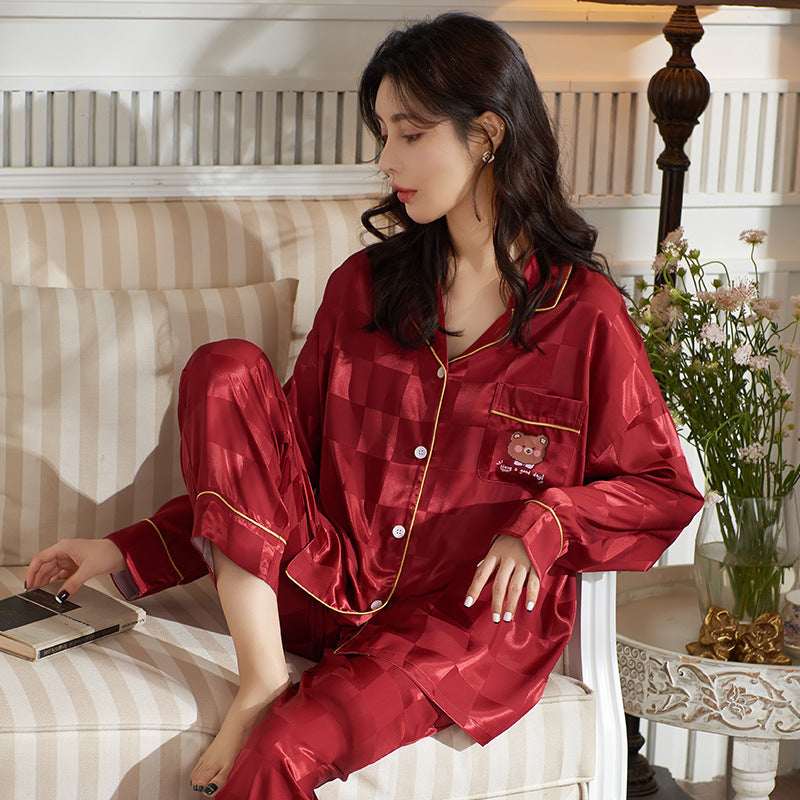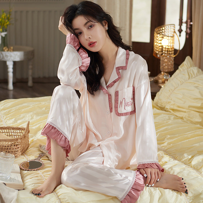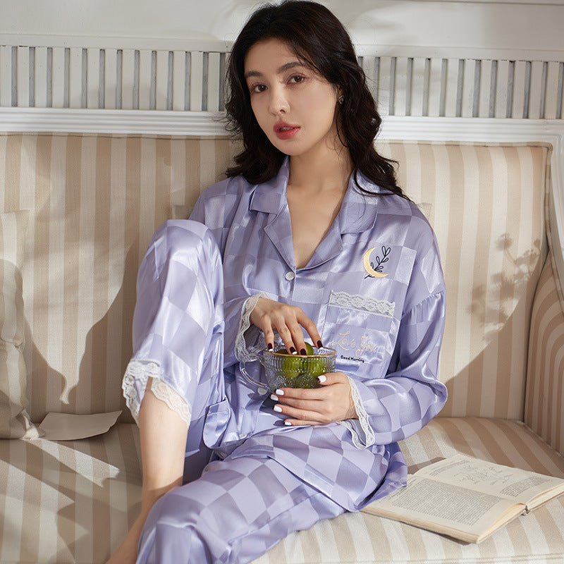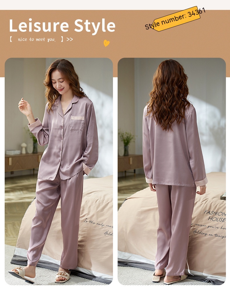 Women's Long-sleeved Ice Silk Thin Homewear...